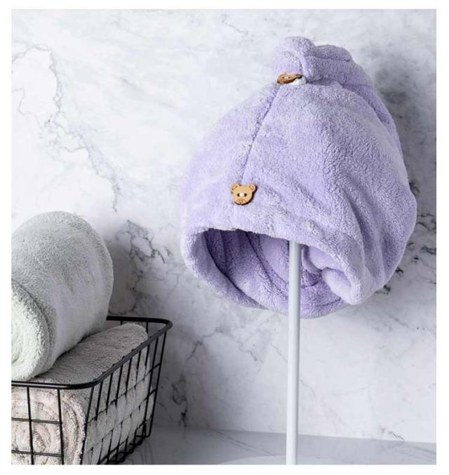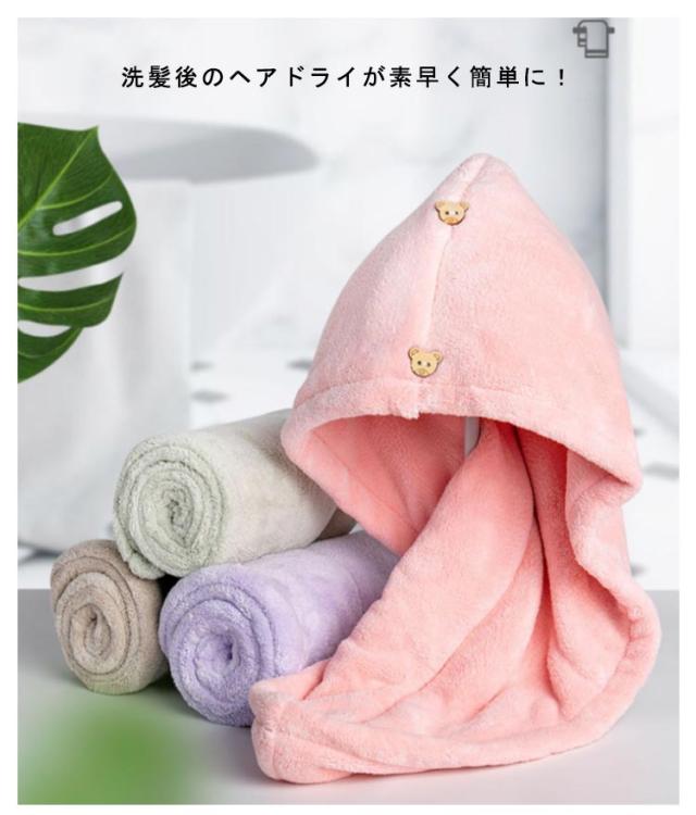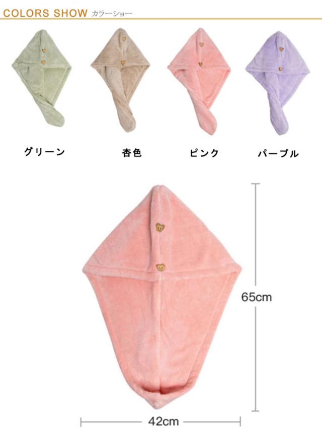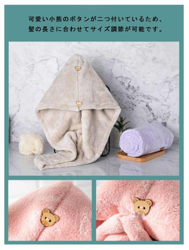 タオルキャップ ヘアドライタオル 送料無料 シャワーキャップ ドライヤー 吸水 タオル 髪タオル 吸水タオル 水分吸収 ヘアドライ 吸水速乾 時短 タオルドライ ドライキャップ ヘアターバン マイクロファイバー お風呂上がり ダブルレイヤー クマボタン