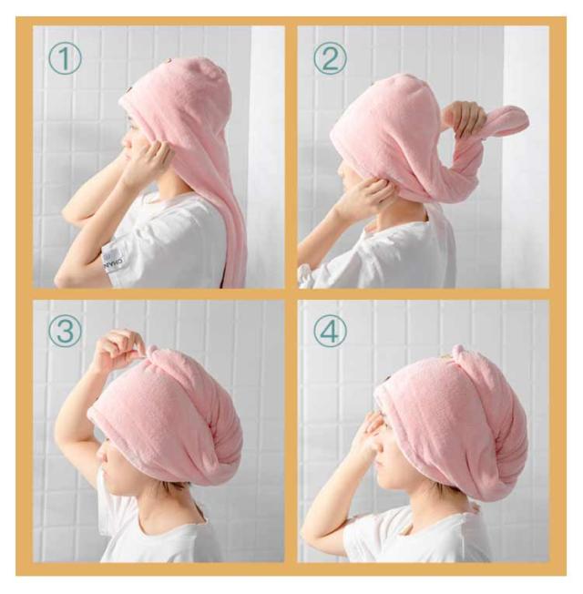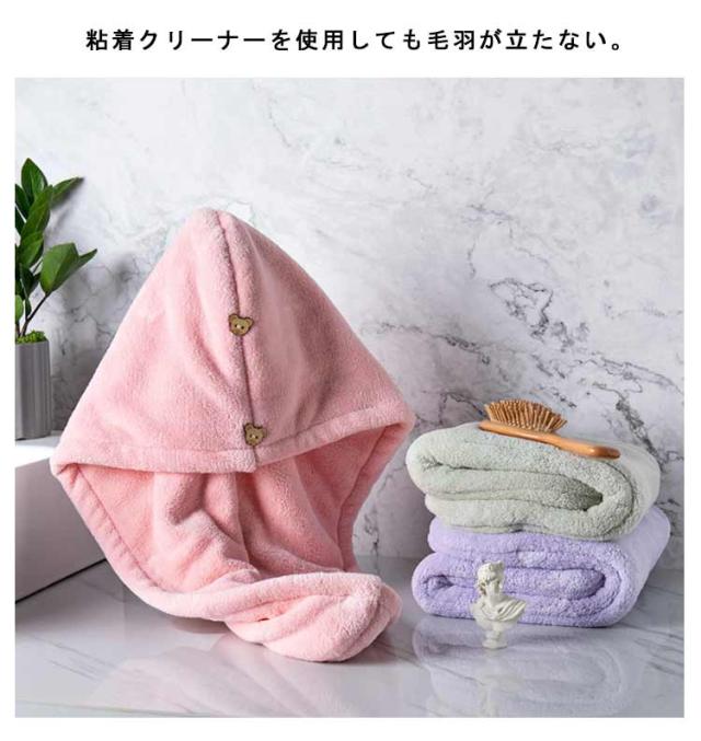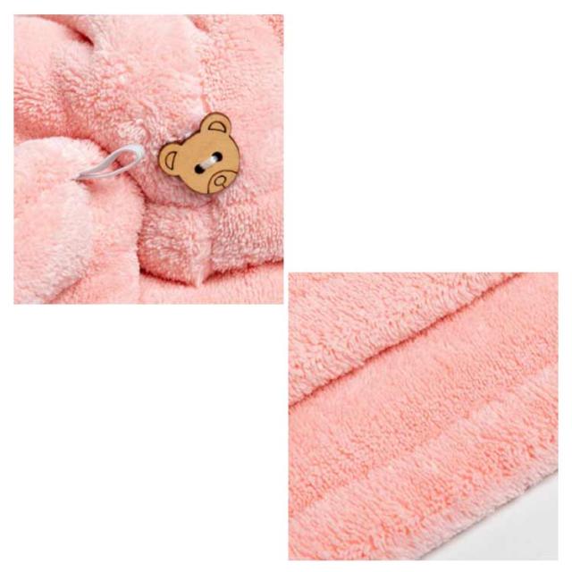 | 洗髪後のヘアドライが素早く簡単に! 一般的なタオルの約2倍の厚さ 粘着クリーナーを使用しても毛羽が立たない。 ターバンとしてだけでなく、普通のタオルのようにドライヤーで髪を乾かしながらも使えて、時短になります。 可愛い小熊のボタンが二つ付いているため、髪の長さに合わせてサイズ調節が可能です。 | |