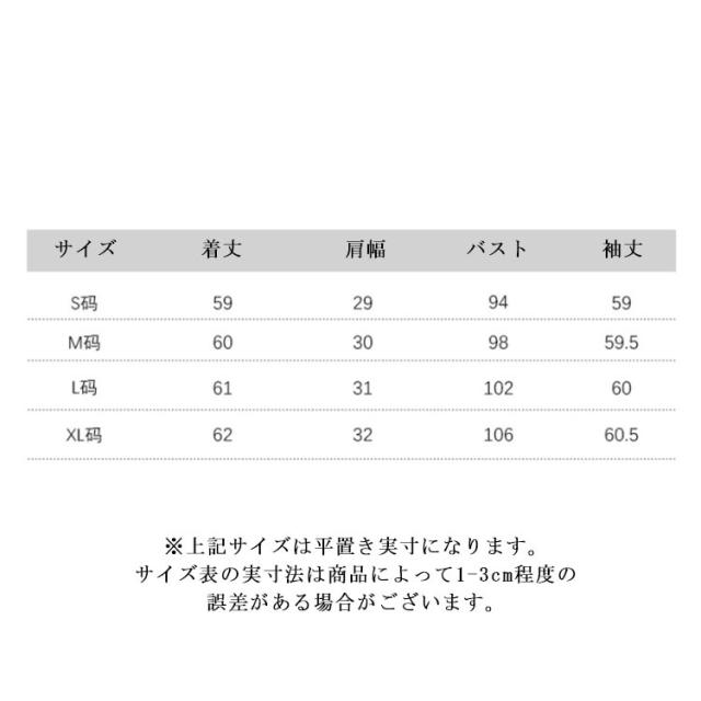 | ●サイズ詳細等の測り方はスタッフ間で統一、徹底はしておりますが、実寸は商品によって若干の誤差(1cm〜3cm )がある場合がございますので、予めご了承ください。 ●商品の色は、撮影時の光や、お客様のモニターの色具合などにより、実際の商品と異なる場合がございます。あらかじめ、ご了承ください。 ●製品によっては、生地の特性上、洗濯時に縮む場合がございますので洗濯時はご注意下さいませ。 ▼色味の強い製品によっては他の衣類などに色移りする場合もございますので、速やかに(脱水、乾燥等)するようにお願いいたします。 ▼生地によっては摩擦や汗、雨などで濡れた時は、他の製品に移染する恐れがございますので、着用の際はご注意下さい。 ▼生地の特性上、やや匂いが強く感じられるものもございます。数日のご使用や陰干しなどで気になる匂いはほとんど感じられなくなります。 | |