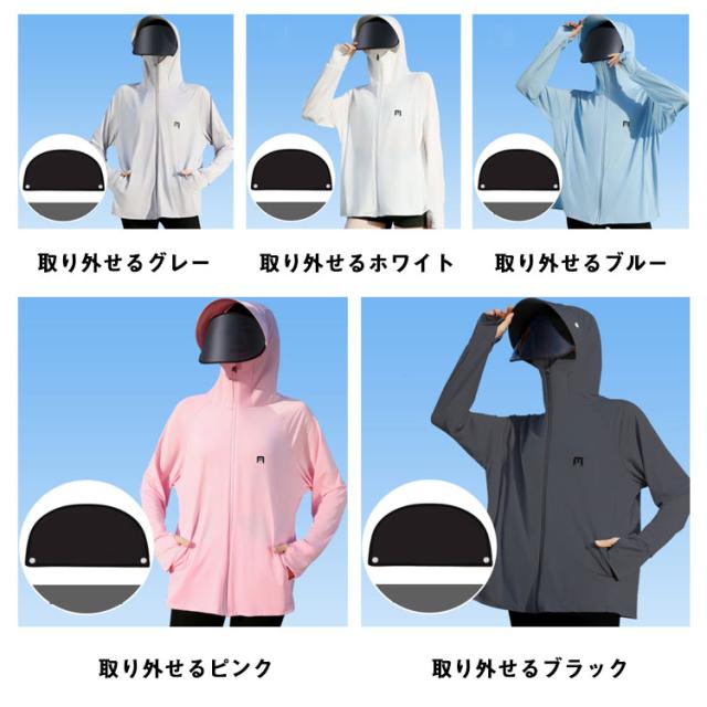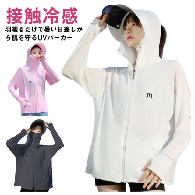 UVカット パーカー 指穴 レディース 着る 日焼け止め 紫外線 カット シンプル 無地 長袖 首元 UPF50+ ひんやり 接触冷感 UV ジップアップ ラッシュガード フード付き カーディガン 日焼け止め 軽量 長袖 春 夏 秋 薄手 吸水速乾 送料無料 ギフト プレゼント