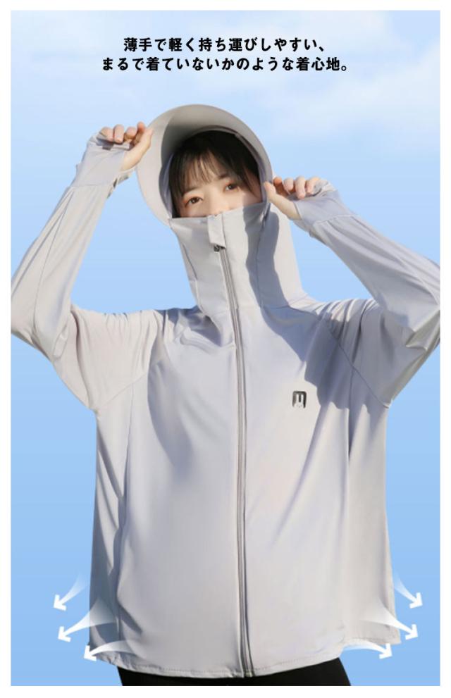 | 羽織るだけで暑い日差しから肌を守るUVパーカー 通常のパーカーより、薄く軽いので動きやすいです。通気性もよく、夏に着ても暑苦しくなりません。 薄手で軽く持ち運びしやすい、まるで着ていないかのような着心地。 これ一枚で、しっかり手の甲まで日焼け対策ができるのが嬉しいポイント。指穴に親指を通せるので、車や自転車のハンドルも握りやすい。 フードつばは一体型、取り外せる2タイプを用意したので、ニーズに合わせてお選びいただけるにもうれしいポイント。 | |