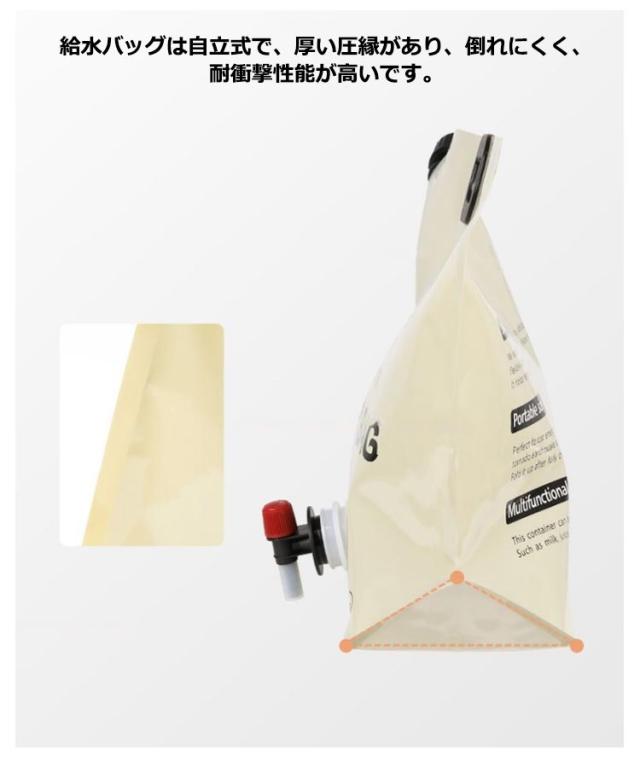 | 2点セット!使い勝手が抜群な大容量のウォータージャグ。 回転式コック付きなので、軽くひねると水が出て、出水量を調節できます。 ジュース、ビール、生活用水、飲料水など、さまざまな液体を入れることができます。 3重構造の厚みある素材で頑丈性に優れて、重いもの置いても、小石の地面でも安心に使えます。 給水バッグは自立式で、厚い圧縁があり、倒れにくく、耐衝撃性能が高いです。 給水口も大きめのサイズとなっているので、水などの液体の出し入れが容易です。 使わない時はコンパクトに折りたたむことができるので、収納場所に困りません。 ウォーターバッグの後ろは一目で水量確認可の目印と透明窓付きです。 持ち手部分には、丈夫なハンドルが付いているので、持ち運びにとても便利です。 キャンプ・釣り・登山などのアウトドアに!災害時の水確保にも最適。 | |