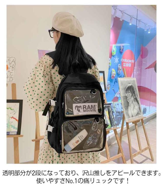 痛バッグ 痛バ リュック 痛リュック 大容量 大きめ リュックサック バックパック 軽量 多機能 ビニール ポケット 缶バッジ ぬいぐるみ 痛バ デコ バッグ 通勤 通学 かわいい 学生かばん 学生鞄 学生バッグ 見せバッグ 透明 オタク 推し活 ライブ イベント 普段使い