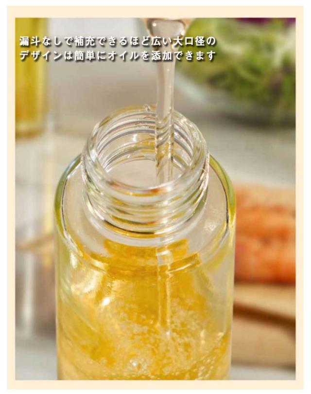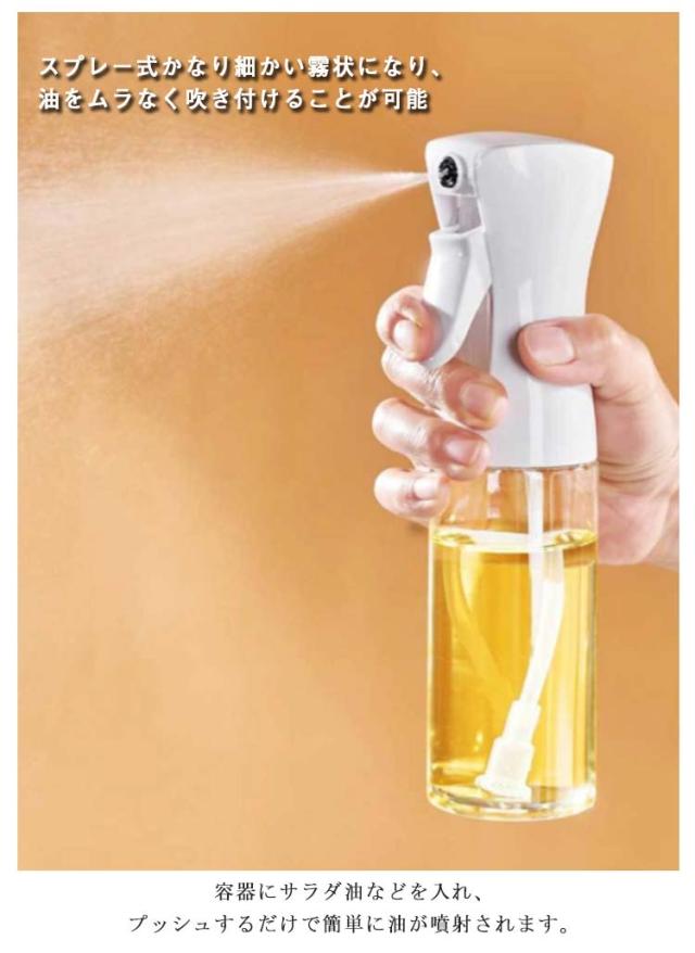 | 霧状で吹き出すので、ムラなく無駄なく使えるオイルスプレーです。 漏斗なしで補充できるほど広い大口径のデザインは簡単にオイルを添加できます。 食器洗い用洗剤で簡単に綺麗にできるので、お手入れがやすいです。 容器にサラダ油などを入れ、プッシュするだけで簡単に油が噴射されます。 オリーブオイル以外にもお酢、醤油、アルコール、レモン汁などにも使える。 | |