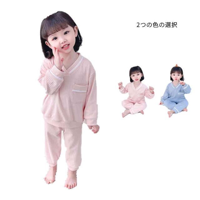 Vネックパジャマ キッズ 春秋 子供パジャマ セットアップ 上下セット ベビーパジャマ 子供服 長袖 長ズボン 女の子 ガールズ 下着・肌着・パジャマ パジャマ 送料無料 子供用パジャマ ルームウェア 寝巻き 寝間着 ナイトウェア 部屋着 ルームウエア シンプル カジュアル