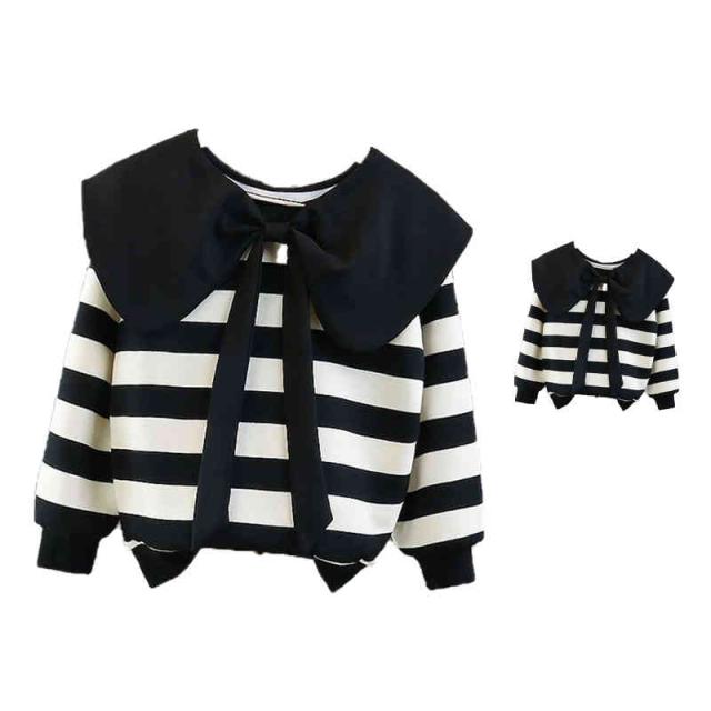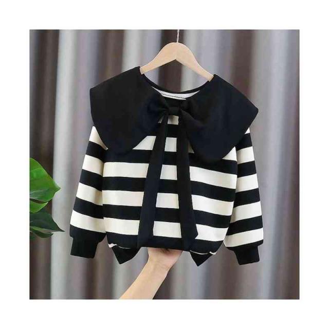 ボーダーブラウス おしゃれブラウス リボンブラウス キッズ リボン付き 長袖 女の子 春秋 切り替え ショートブラウス シンプル カジュアル おしゃれ 送料無料 おでかけ 子供服