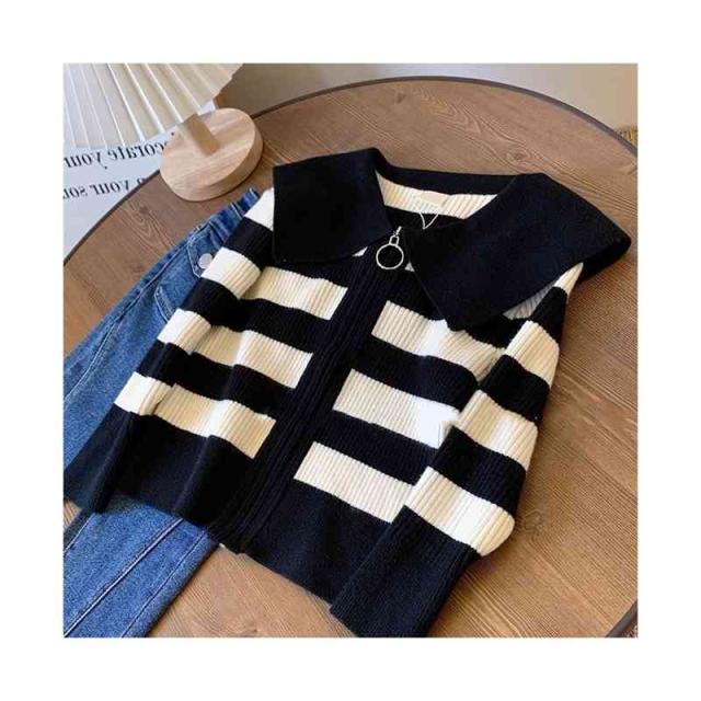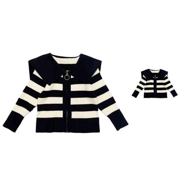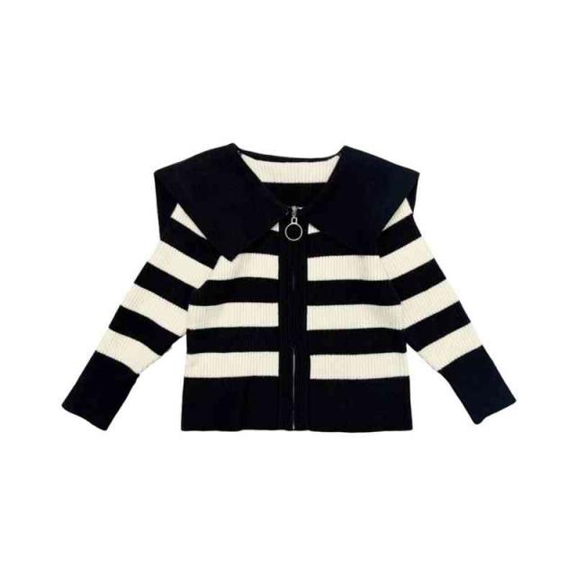 カーディガン キッズ 春秋 ボーダー柄カーディガン ニットカーディガン ニット 女の子 ニット ショートカーディガン セーラー襟 学院カーディガン ニットセーター 子供カーディガン 子供服 体型カバー トップス ジュニア アウター 送料無料