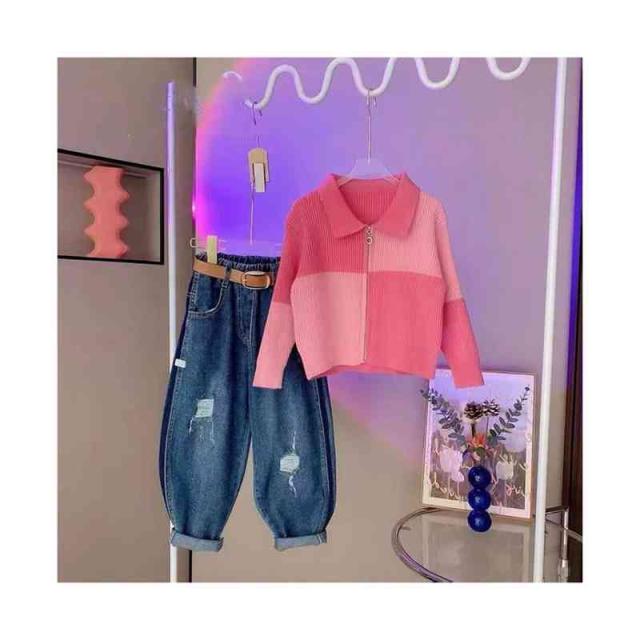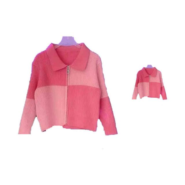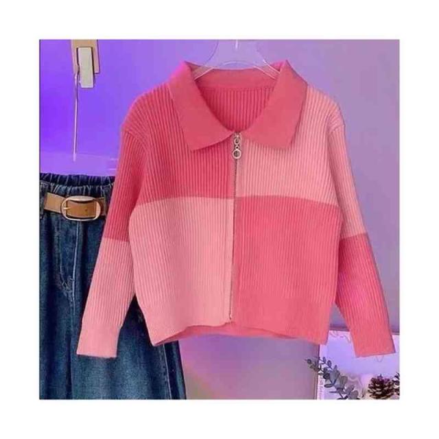 子供ニットカーディガン キッズ 春秋 折襟 切り替え 子供服 ファスナーカーディガン アウター おしゃれカーディガン 女の子 長袖 ニットセーター トップス 無地 シンプル カジュアル おしゃれ 送料無料 おでかけ
