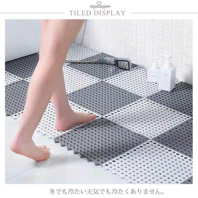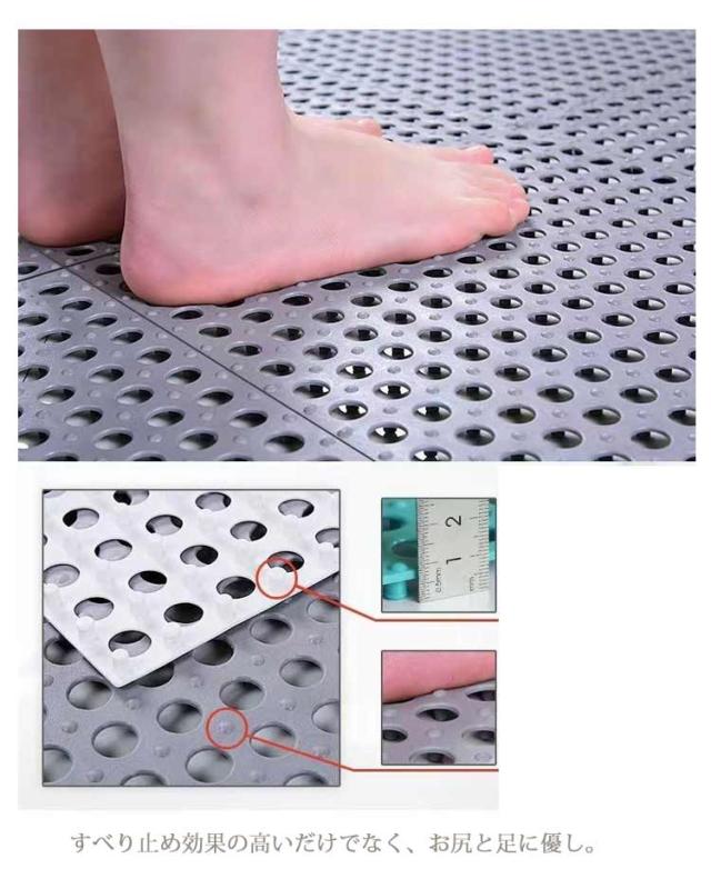 | 30×30cm20枚セット!お風呂滑り止めマット 床としっかり吸着固定、安定性抜群!入浴剤や石鹸の泡などによる転倒を防止! 厚みがあるから床の湿気を防ぐ、防カビ機能も期待できる。 ジョイント部分を重ねるだけ、工具不要でかんたんに組み立てる!使う場所の形状に合わせて裁断可能。 汚れたら洗い流すだけ!風通しの良い直射日光の当たらない場所で陰干ししてください。グルグル巻いて移動も楽ちん! すべり止め効果の高いだけでなく、お尻と足に優し。冬でも冷たい天気でも冷たくありません。 浴室を敷き詰めると滑り止め効果抜群!浴室だけでなく、キッチン、玄関、温泉、スパ、ホテル、ジムやベランダの出入り口などの所としてもOKです。柔軟性が強く、折り曲げて変形しにくく、丈夫で長持ちします! | |