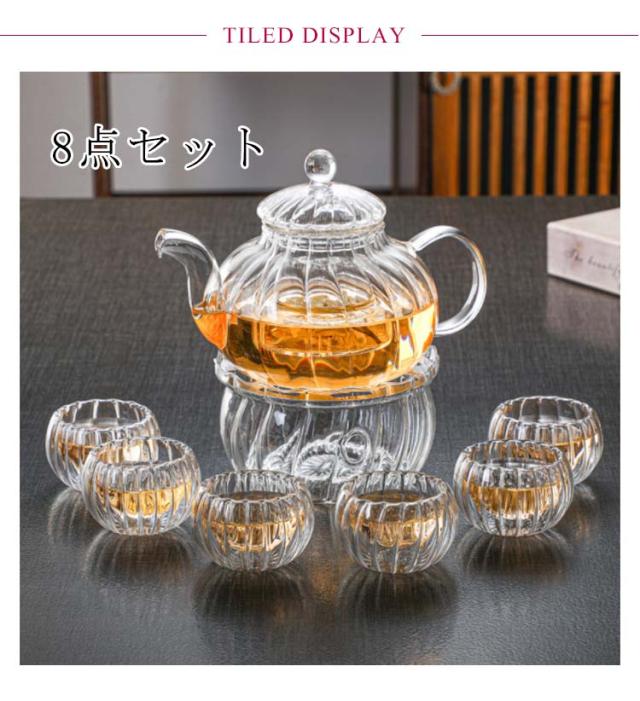 8点セット ティーポット 600ml ガラスキャンドル 直火 耐熱ガラス 保温ウォーマン セット 直火可 北欧 ガラスティーポット ティーセット ガラス 急須 ガラス製ポット 急須 ティーフォーツー ガラス製ポット 紅茶 フルーツティー リーフティー 花茶 工芸茶 ハーフティー