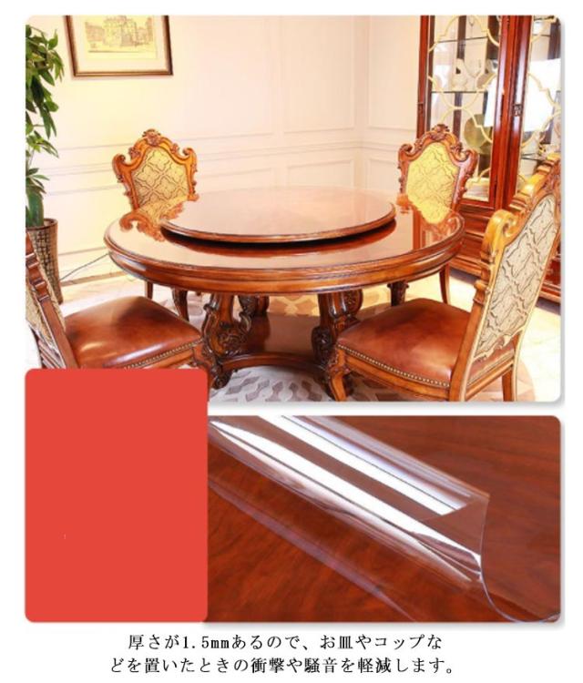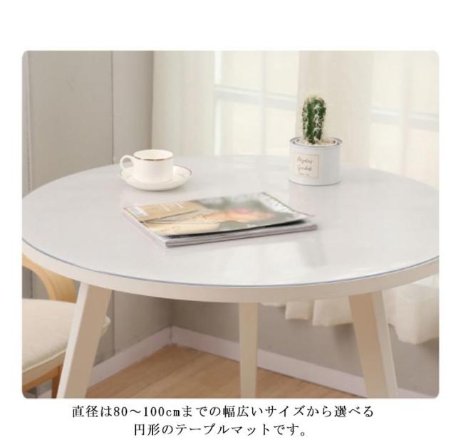ダイニングテーブルマット デスクマット テーブルマット 厚1.5mm 直径80cm 直径85cm 直径90cm 直径95cm 直径100cm 汚れ防止 傷防止 キズ防止 円形 PVC 防水 ビニールマット 勉強机 学習机 オフィスデスク