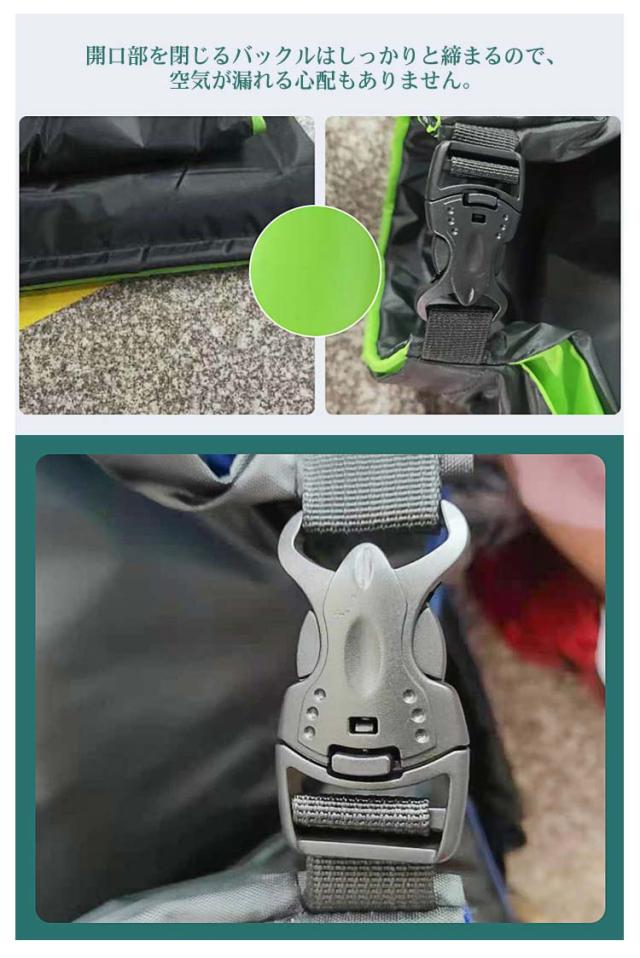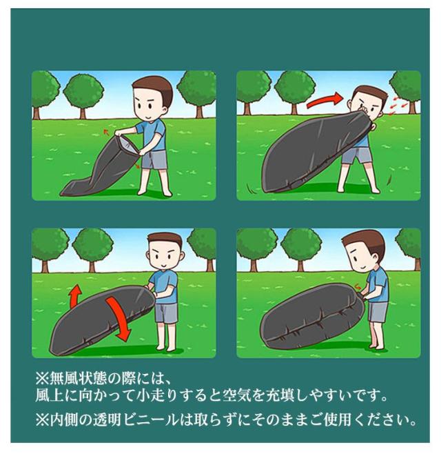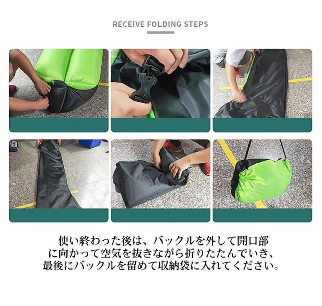 | ・一度座るとクセになる!すぐに使える、ポータブルエアーソファー! ・ポンプ不要で簡単に空気を入れられる手軽さもGOOD! ・体を包み込むような気持ち良さ♪誰もが快適に感じるエアーソファー。 ・ピクニックやキャンプなどのアウトドアシーンにも大活躍。手軽にくつろぎ空間を演出できます。 ・空気の出し入れがしやすいよう、開口部は大きく設計されています。 ・開口部を閉じるバックルはしっかりと締まるので、空気が漏れる心配もありません。 ・使い終わった後は、バックルを外して開口部に向かって空気を抜きながら折りたたんでいき、最後にバックルを留めて収納袋に入れてください。 ・女性や子供でも持ち運びやすく、収納もコンパクトで便利にお使いいただけます。 【設置方法】 1.シートの空気口を広げて、空気を入れます。 2.空気口を閉じ丸めて、空気を閉じ込めます。 3.空気圧が十分になったら、バックルを止めます。 ※無風状態の際には、風上に向かって小走りすると空気を充填しやすいです。 ※内側の透明ビニールは取らずにそのままご使用ください。 | |