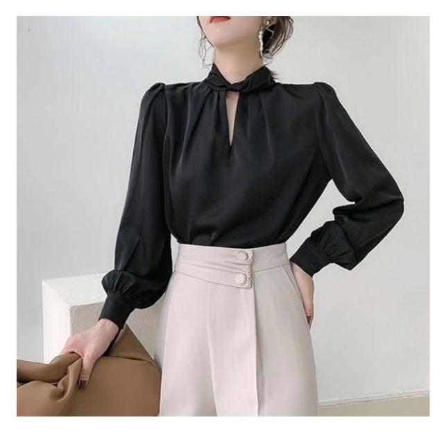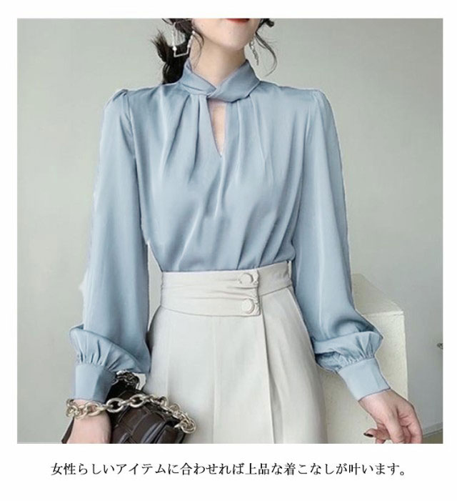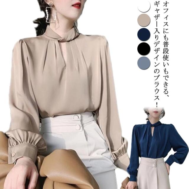 ギャザー入り ブラウス フォーマル 長袖 ボリューム袖 レディース シャツ サテン風 長袖ブラウス フォーマルブラウス オフィスブラウス オフィス おしゃれ 春 春物 春服 上品 S M L XL 2XL