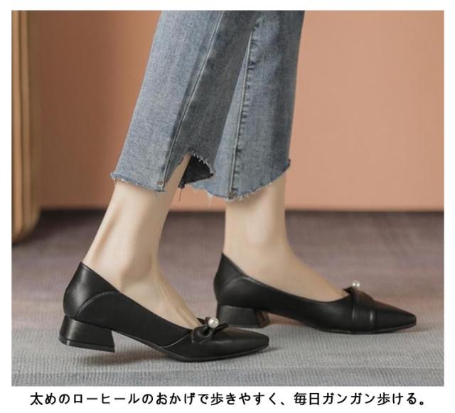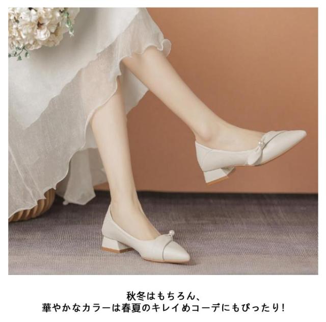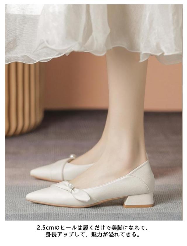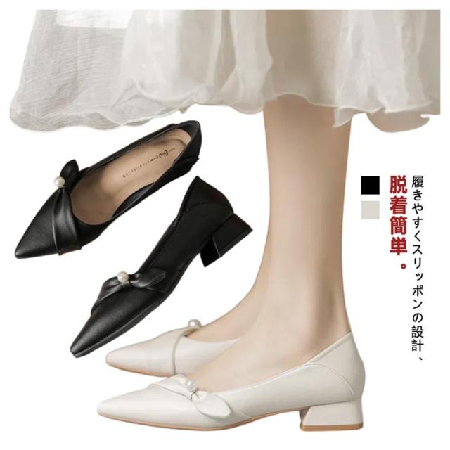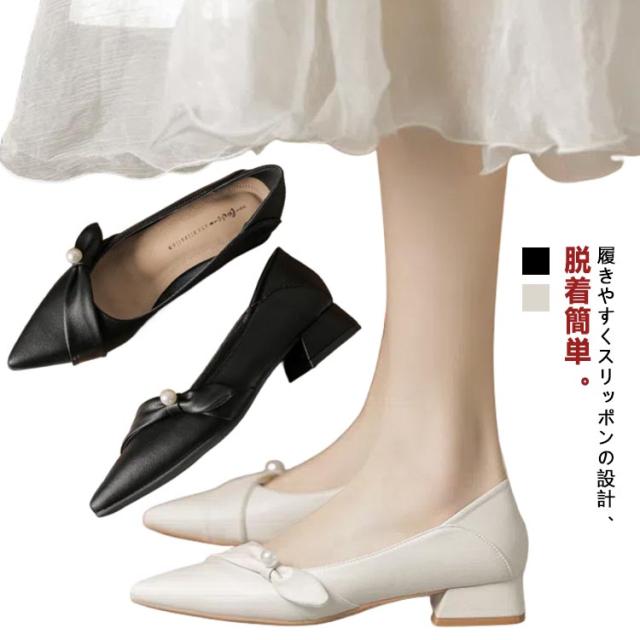 パンプス 痛くない ローヒール 2WAY パール ポインテッドトゥ 結婚式 脱げない 靴 疲れない 歩きやすい レディース スリッポン 2.5cmヒール 太ヒール オフィス カジュアル おしゃれ 可愛い フォーマル 二次会 通勤 通学 大きいサイズ 小さいサイズ 22-25cm