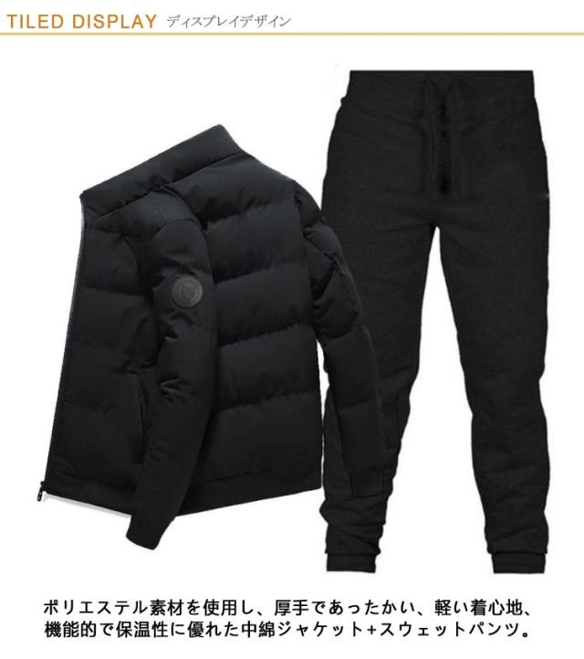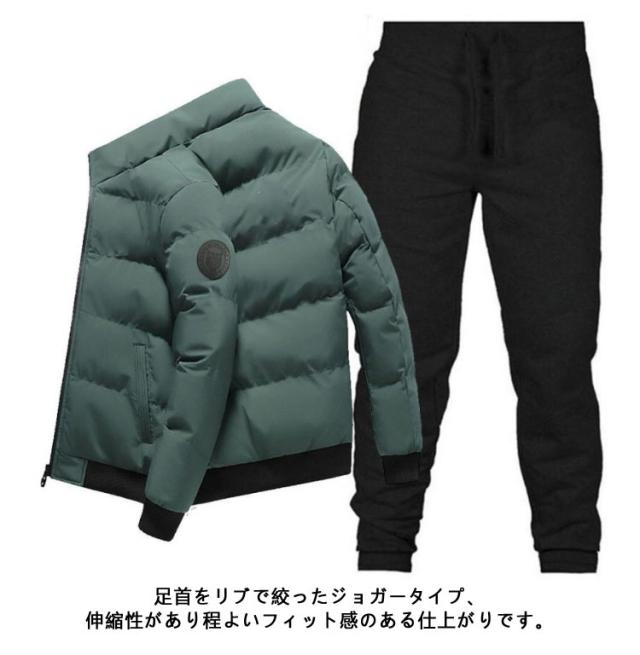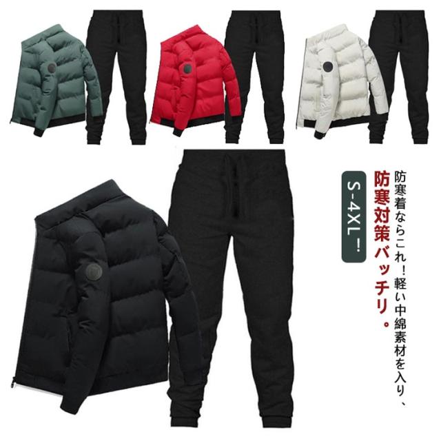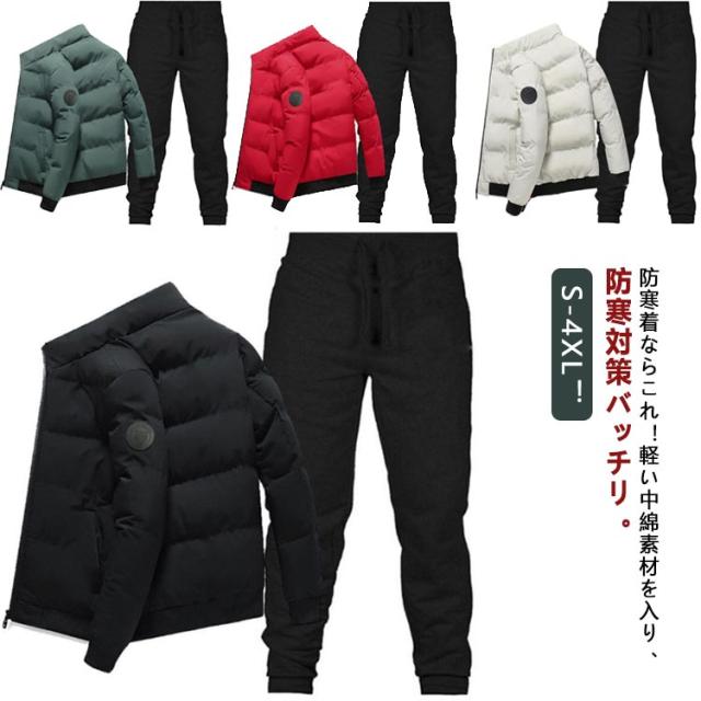 メンズ ジャージ 上下セット 中綿ジャケット スウェットパンツ 2点セット セットアップ 秋冬 冬服 立ち襟 ダウン中綿ジャケット 長ズボン 大きいサイズ 厚手 暖か 防寒 ランニングウエア あたっか カジュアル ルームウェア 部屋着 スポーツウェア 春 秋 冬 S-4XL