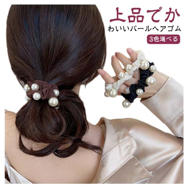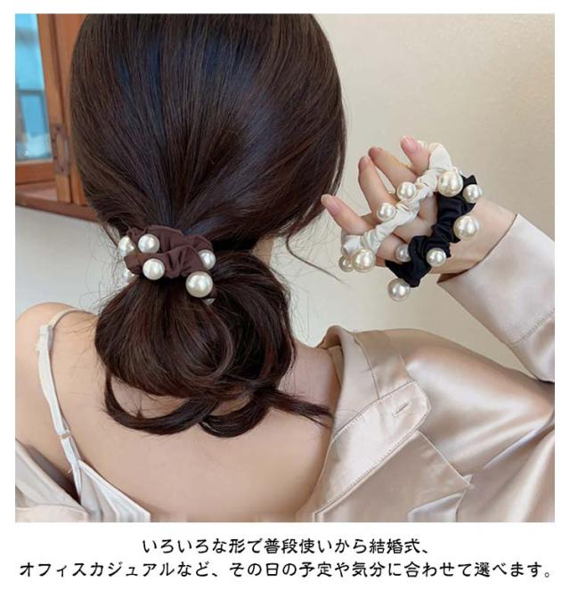 ヘアゴム 2点セット 大人っぽい パールヘアゴム ヘアアクセサリー おしゃれ 大人用 痛くない 髪ゴム 上品 オフィス 結婚式用 レディース 黒色 ブラック ブラウン ベージュ 通勤 通学 送料無料