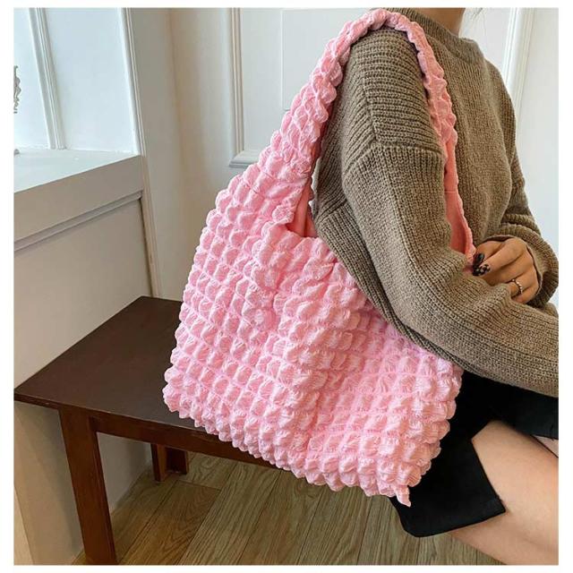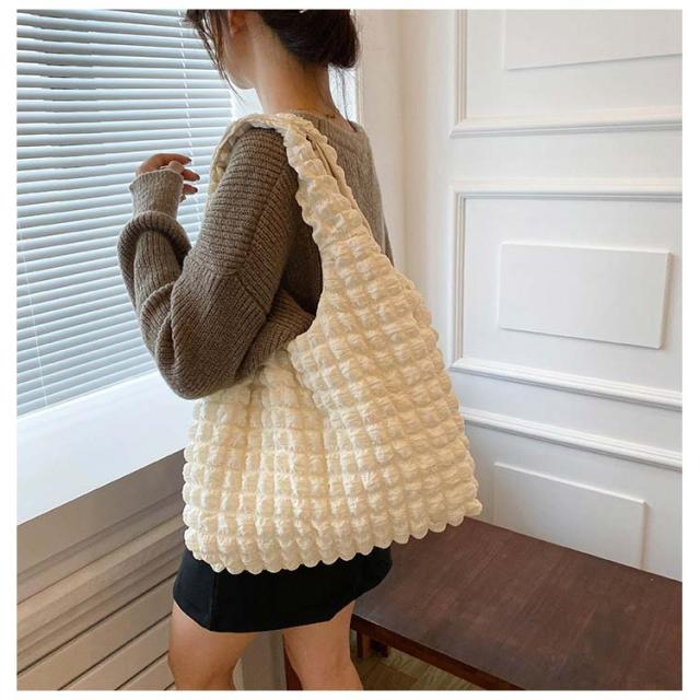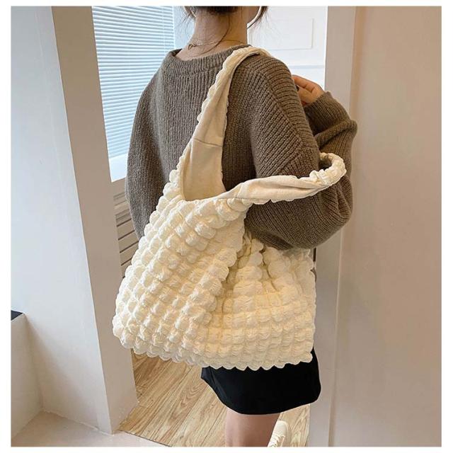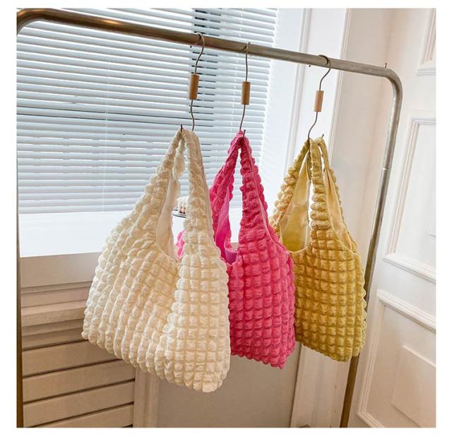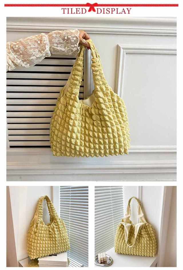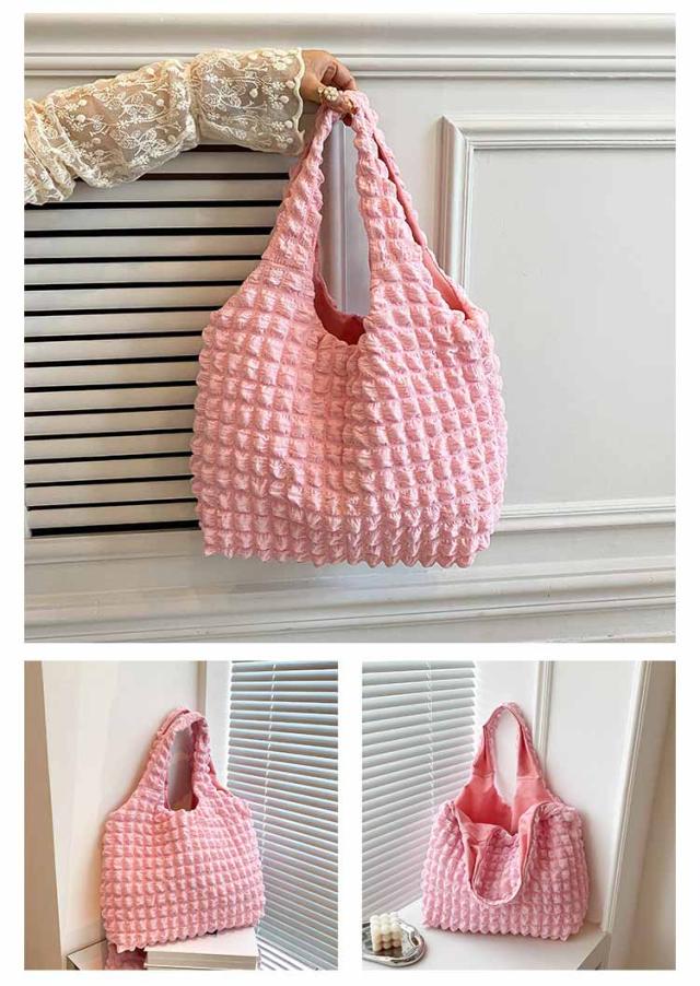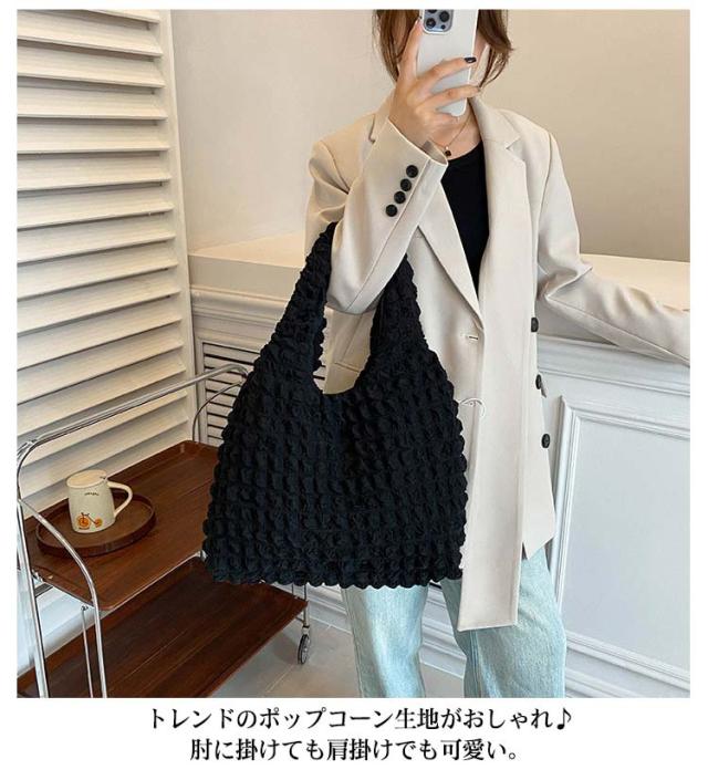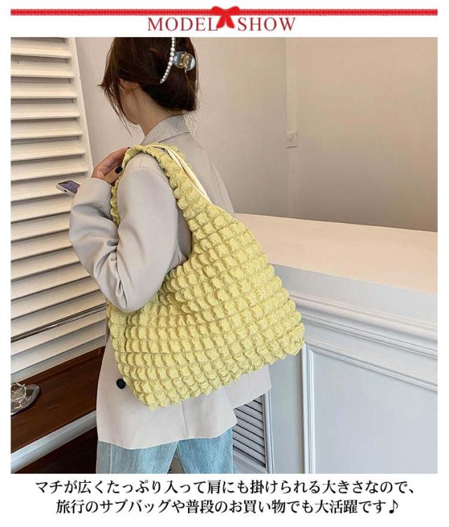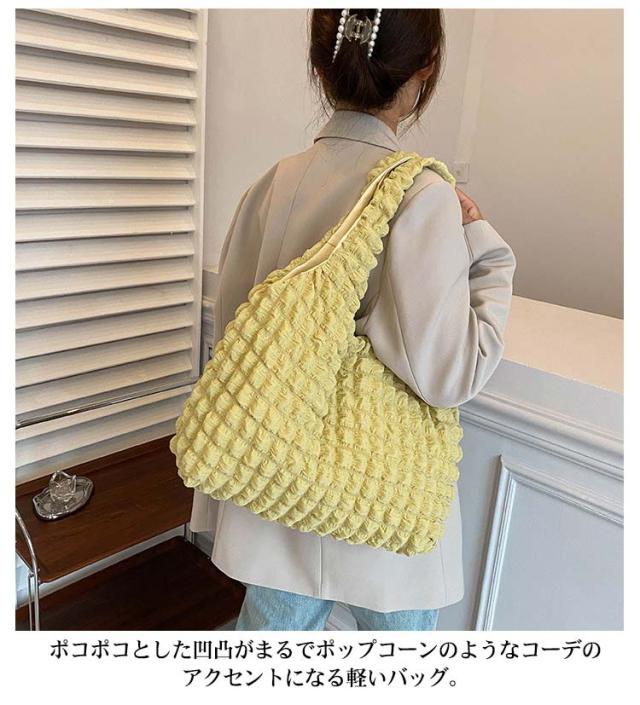 トートバッグ ポコポコ ポップコーン バッグ レディース ぽこぽこ ショルダーバッグ a4 エコバッグ 軽量 サブバッグ 軽い 韓国 おしゃれ 可愛い シャーリング シンプル エンボス 凸凹 大容量 大きめ 送料無料