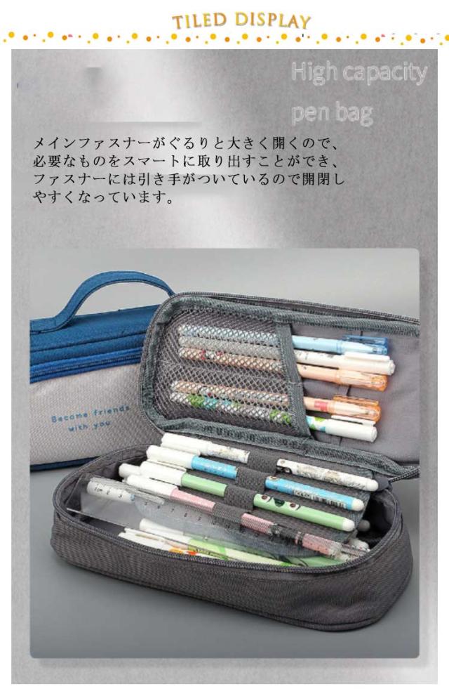 | たっぷり入ってすっきり整理もできるペンケース 良質なキャンバス生地で作られており、精巧で耐久性があり、軽くて耐摩耗性で清潔になりやすいです ペンシルケースのほこり、裂け目、引っかき傷、摩耗に対する強力な保護を提供します。 メインファスナーがぐるりと大きく開くので、必要なものをスマートに取り出すことができ、ファスナーには引き手がついているので開閉しやすくなっています。 大容量デザイン。消しゴム、付箋、ハサミ、定規、メジャー、修正テープなどの小物もたっぷり収容できます ペン袋は鉛筆に適しているだけでなく、化粧品バッグ、クラフトバッグ、旅行などとしても利用してこともできます。 | |