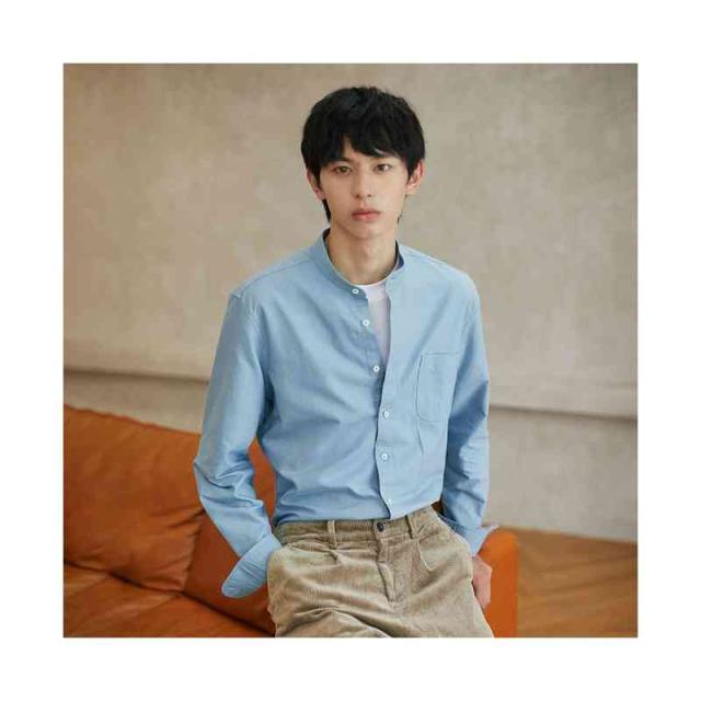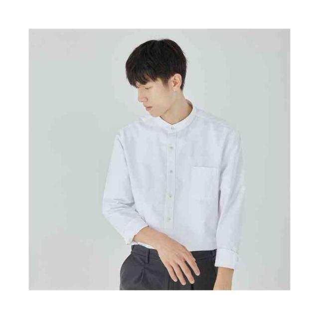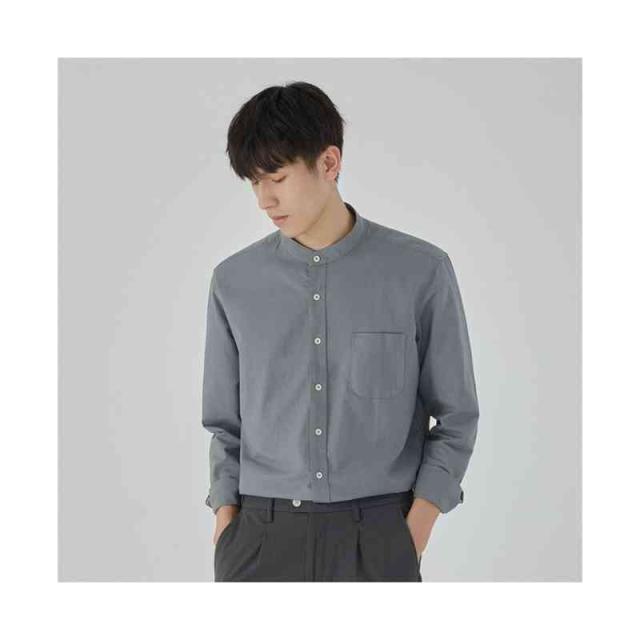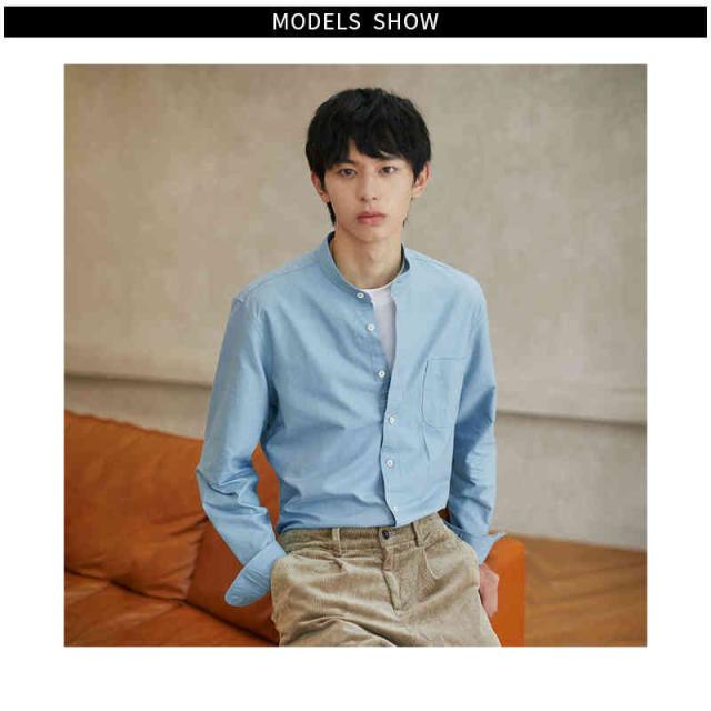 シャツ 無地 オックスフォードシャツ メンズ 長袖シャツ バンドカラー スタンドカラー 送料無料 父の日 プレゼントに最適 通販 春服 春用 送料無料