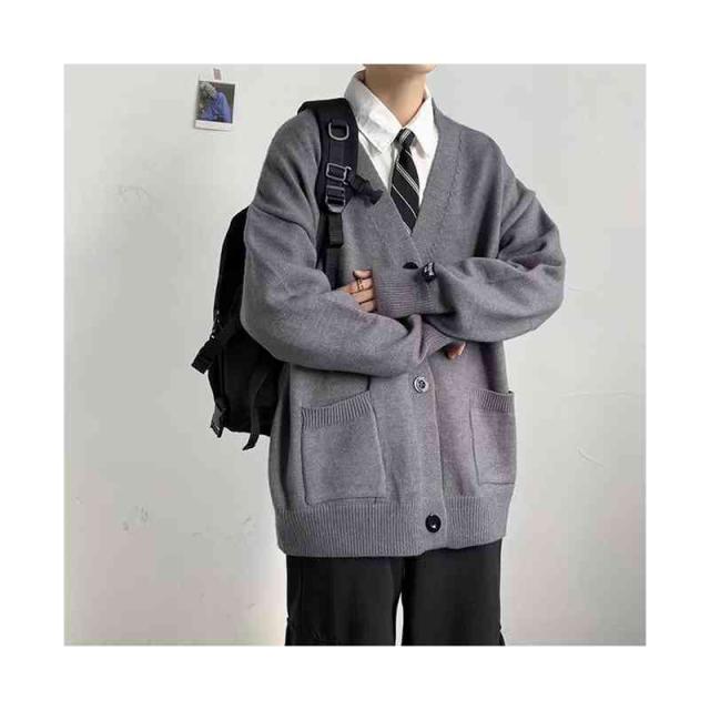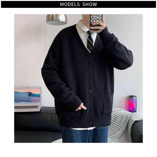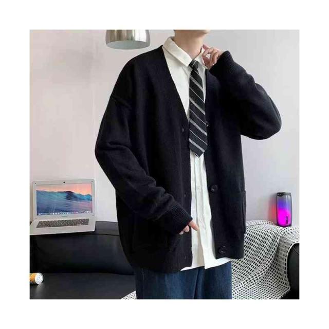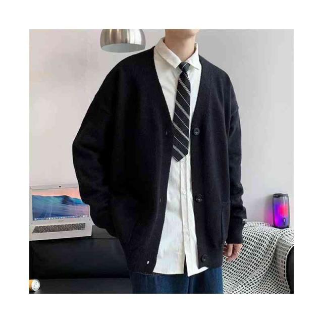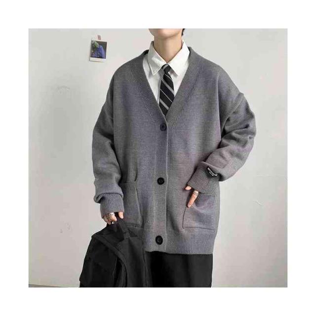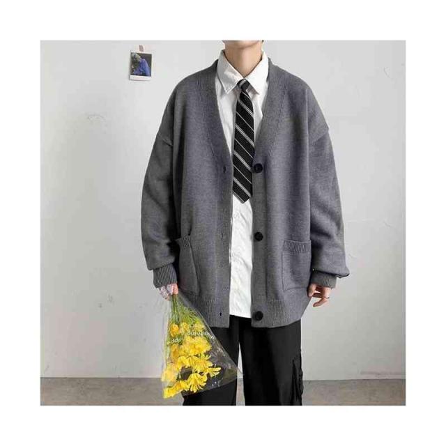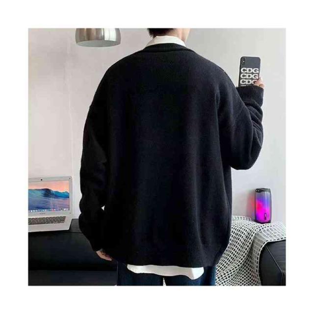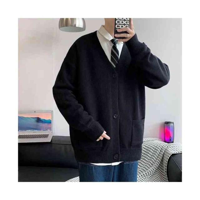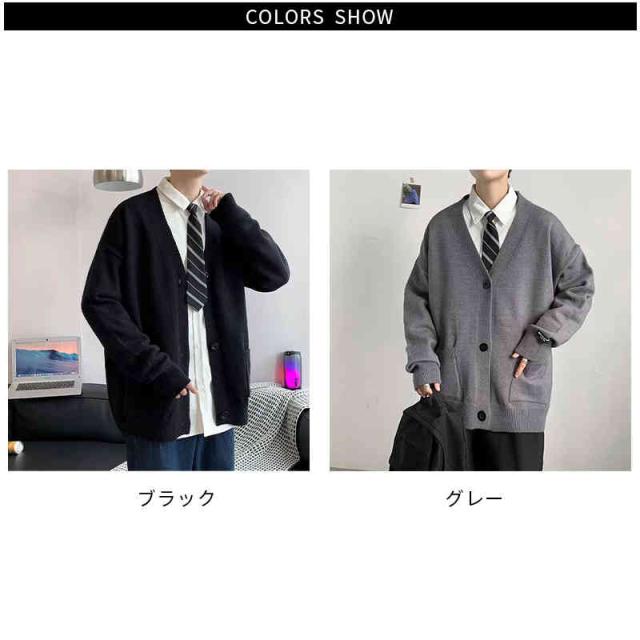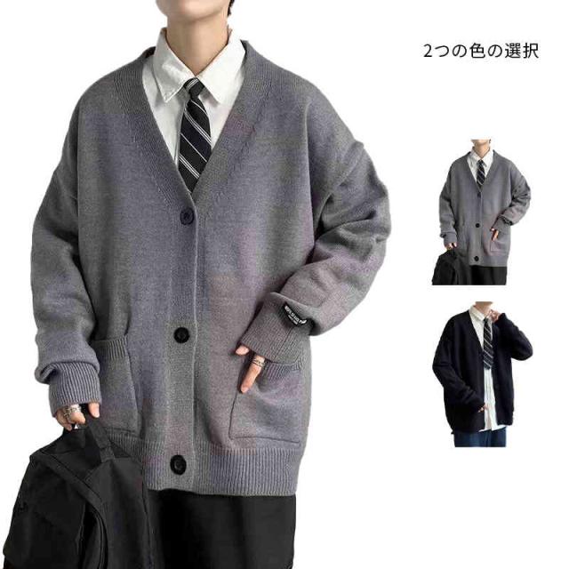 カーディガン メンズ 春 ニット ニットカーディガン Vネック カーデ シンプル 無地 Vネックカーディガン ポケット付き ゆったり 送料無料