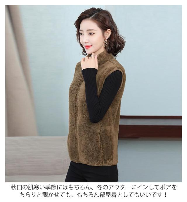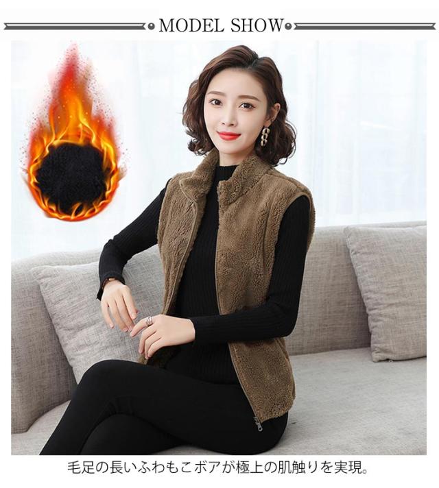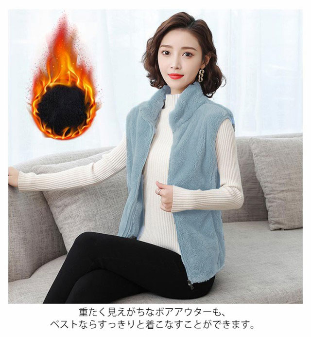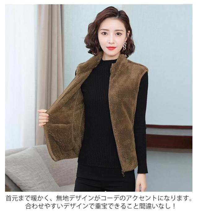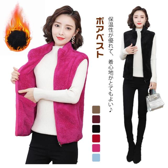 ボアフリースベスト ボアベスト ボアジャケット フリース ベスト レディース 立ち襟 スタンドカラー 首元暖かい 無地 50代 秋 冬 40代 30代 ボアベスト ボアブルゾン ノースリーブ アウター 送料無料 アウトドア