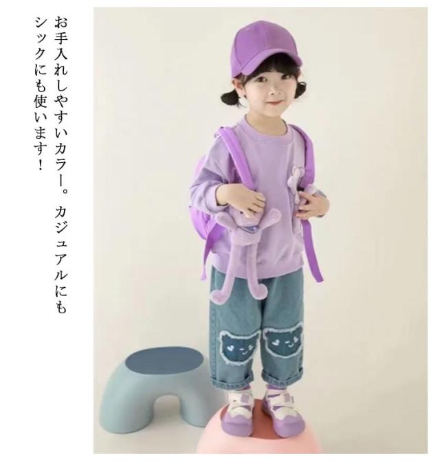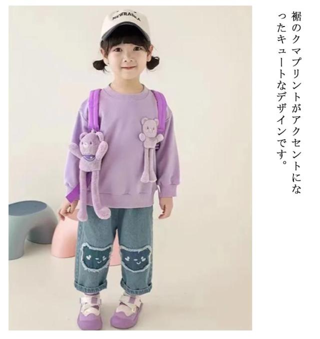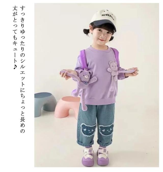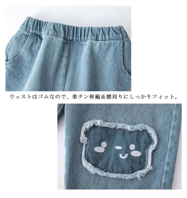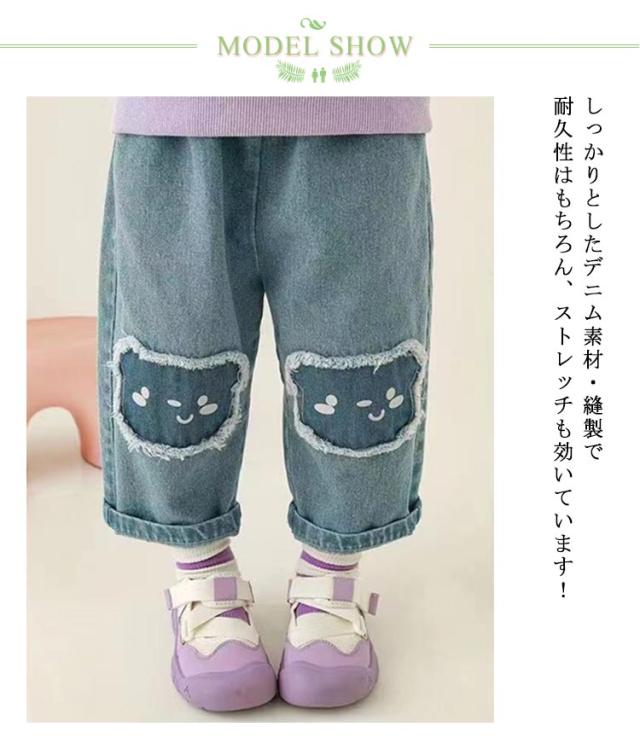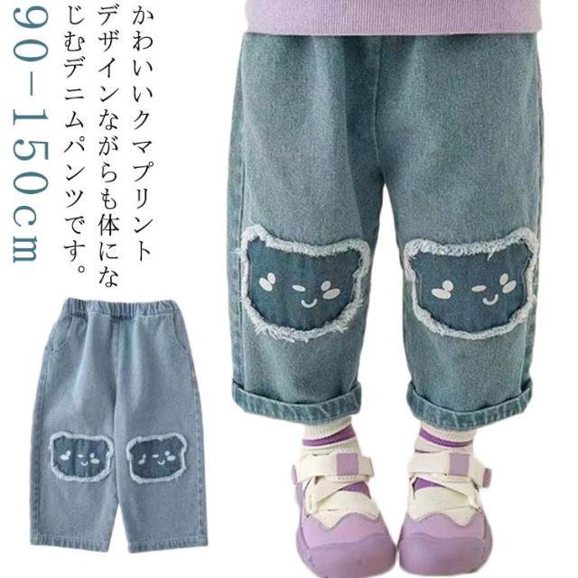 送料無料 クマプリント デニムパンツ キッズ 女の子 ストレッチパンツ 子供服 こども服 子ども服 ヴィンテージ ダメージ ジーパン ジーンズ 子供服 子供パンツ デニム ロングパンツ ズボン ゆったり 薄手 小学生 おしゃれ かわいい
