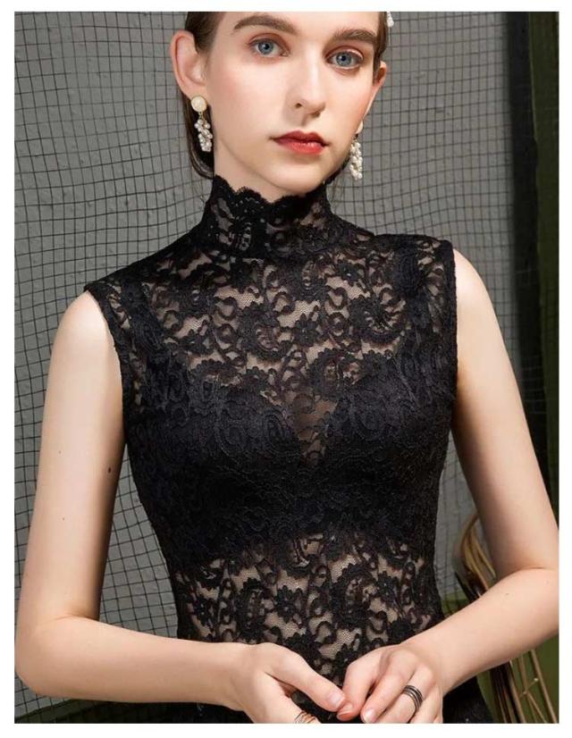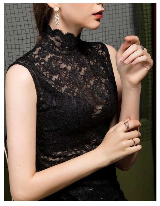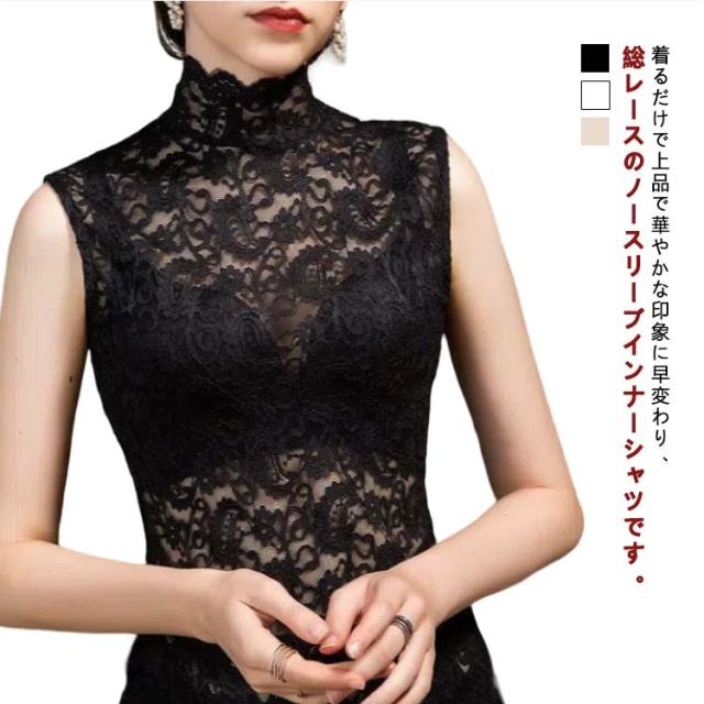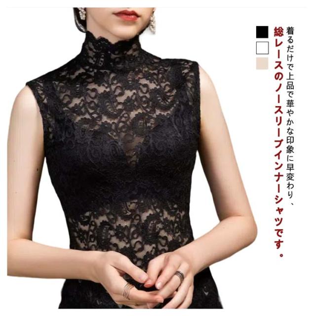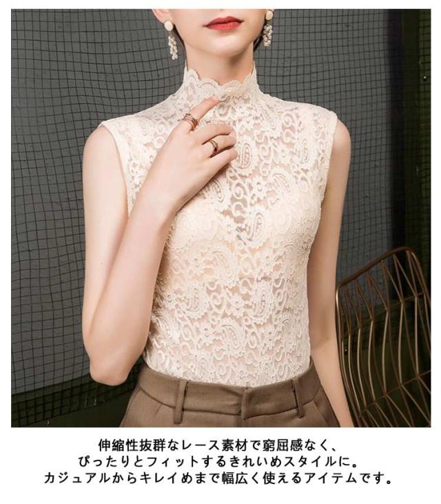 総レースブラウス シャツ ハイネック 花柄 レース インナー レディース レース トップス レース 袖なし ノースリブ ブラウス 立ち襟 春夏 インナー 肌着 韓国ファッション 通勤 OL トップス ブラウス 総レース