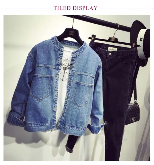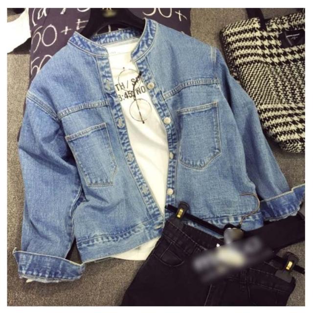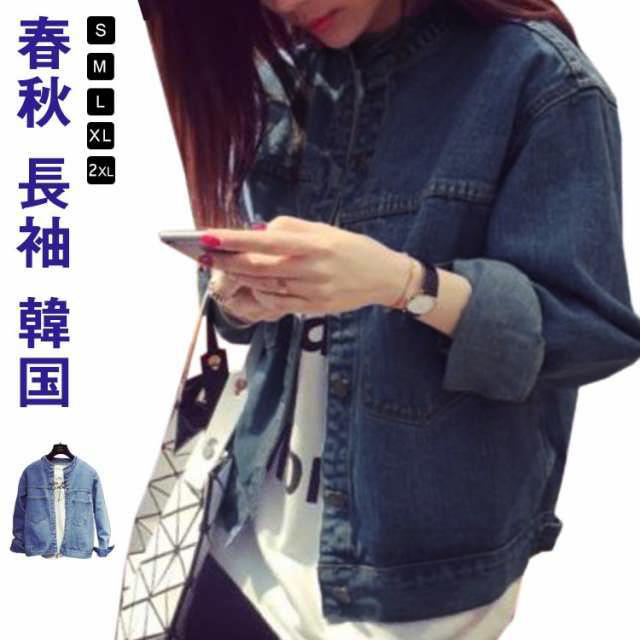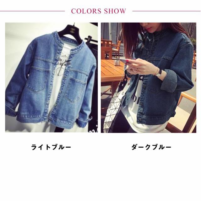 デニムジャケット レディース 春秋 長袖 ノーカラー コート ショート 韓国 カジュアル アウター 春 秋 服 きれいめ おしゃれ