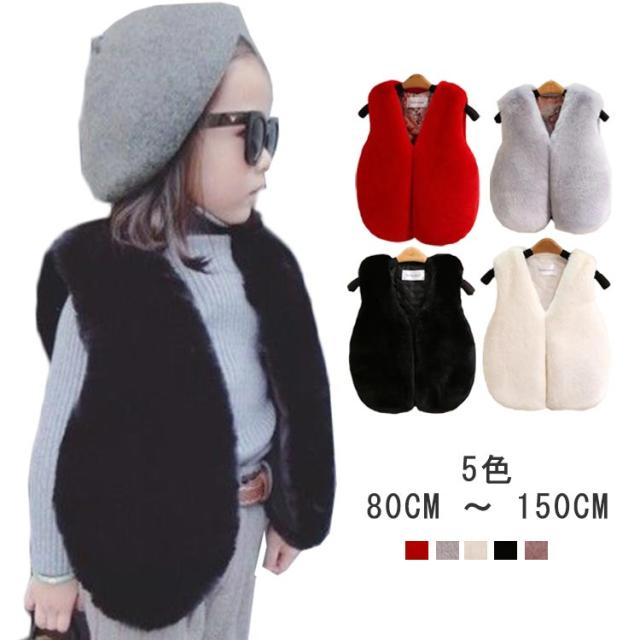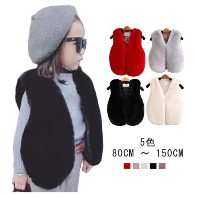 ファーベスト ショート キッズ ファーベスト フェイク ベスト 女の子 子供 フェイクファー ベスト アウター ノースリーブ ファーコート ベビー エコファー もこもこ ボア 厚手 重ね着 子供服 子ども服 秋冬 お出かけ 結婚式 披露宴 秋 冬