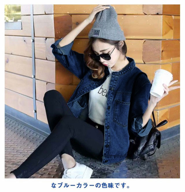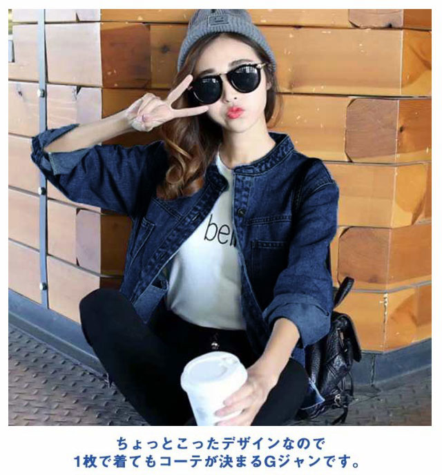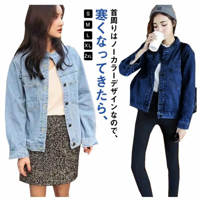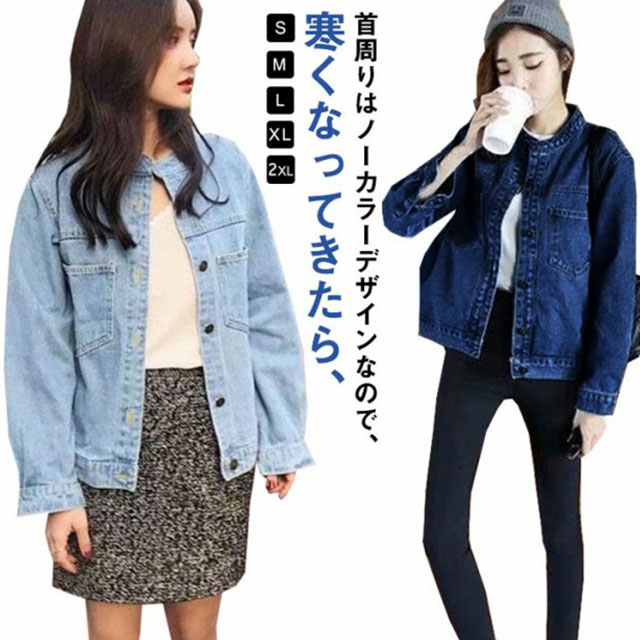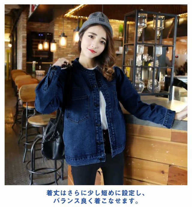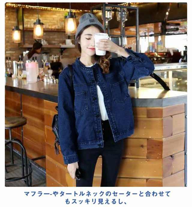 デニムジャケット ノーカラーデニムジャケット ショート丈 レディース Gジャン 長袖 立ち襟 ノーカラー デニムコート ショート カジュアル アウター 春秋 きれいめ おしゃれ 送料無料 韓国ファッション デニム 羽織り