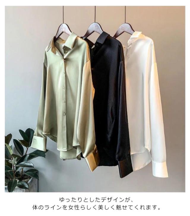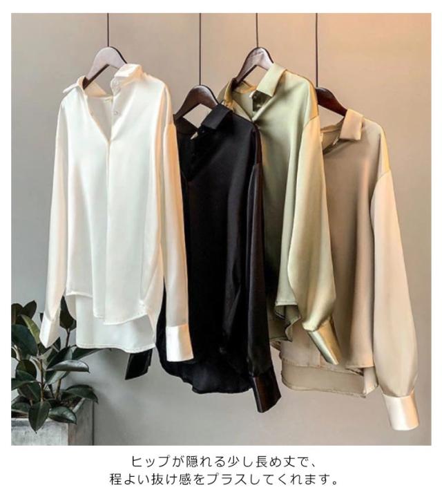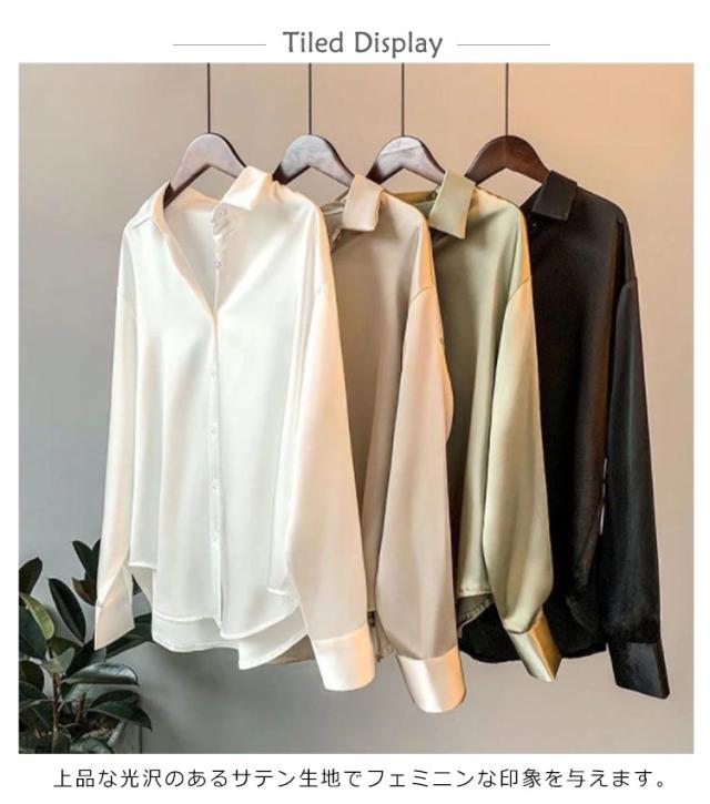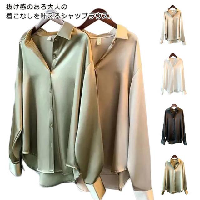 レディース ブラウスシャツ シャツ ブラウス 長袖シャツ サテン スキッパーシャツ チュニック 大人 オフィス キレイめ 着痩せ 仕事着 スーツ 春 夏 春夏 オフィス 通勤 ストライプシャツ トップス 20代 30代 40代 ママ 母 OL 送料無料