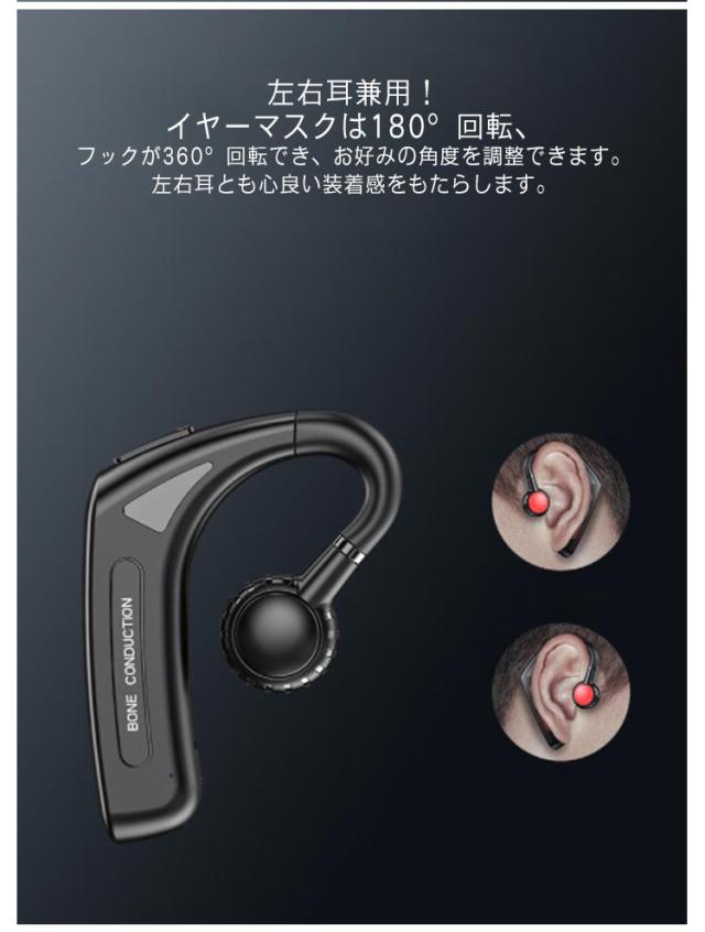 骨伝導 ヘッドホン Bluetooth5.1 ワイヤレスイヤホン 片耳 耳掛け 完全ワイヤレスイヤホン マイク付き ワイヤレス 防水 高音質 ブルートゥース スポーツ 軽量 通話可能 自動ベアリング iPhone Android 運転 オフィス 運動 IPX5防水 操作簡単 空気伝導 スポーツ 業務用