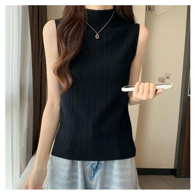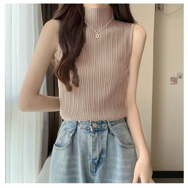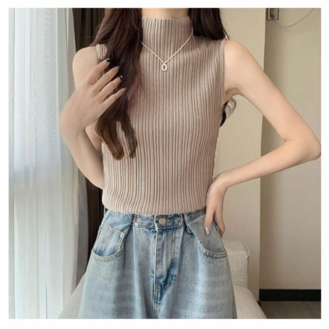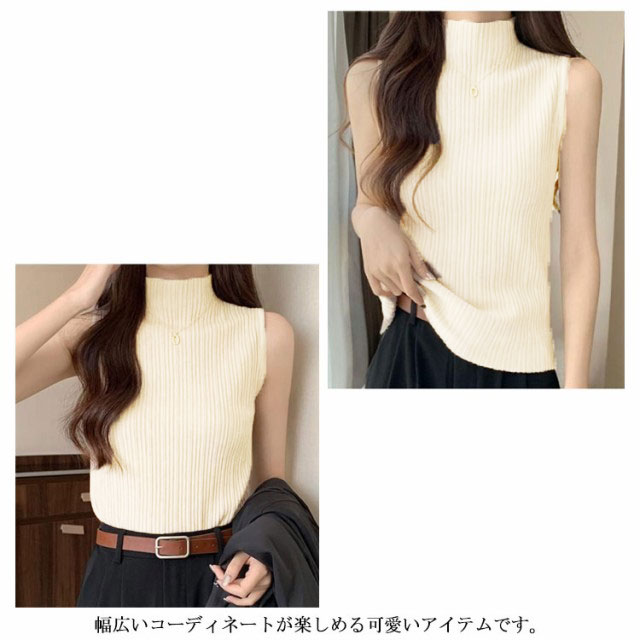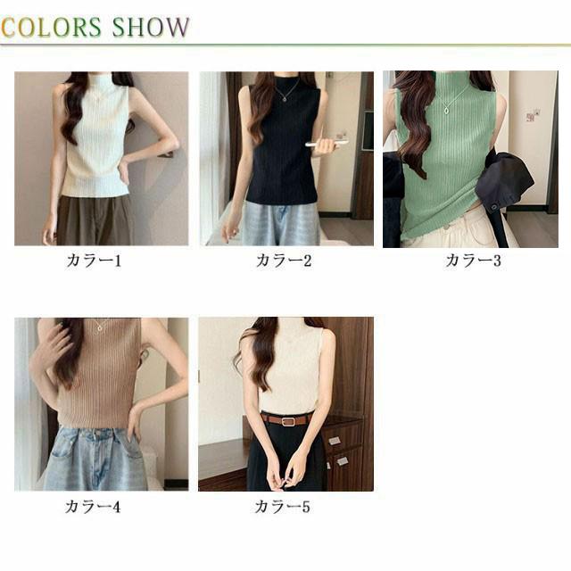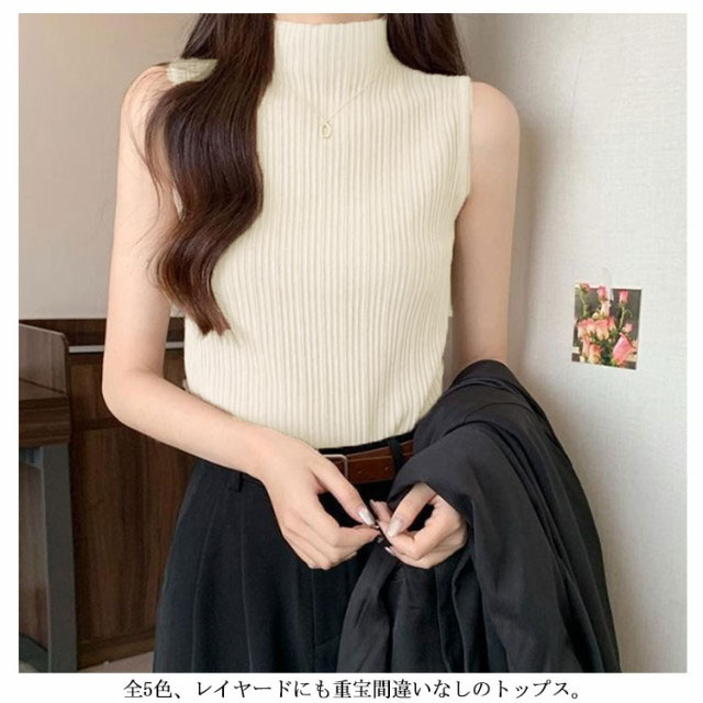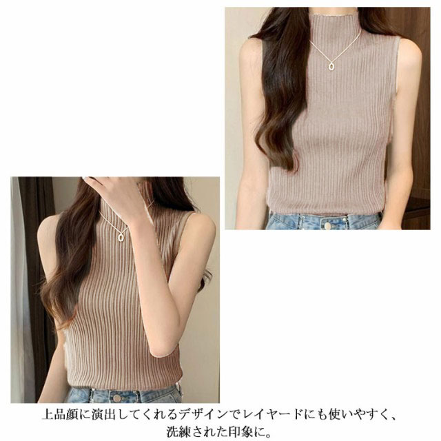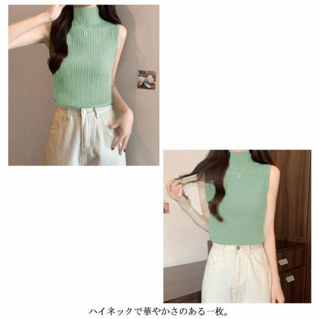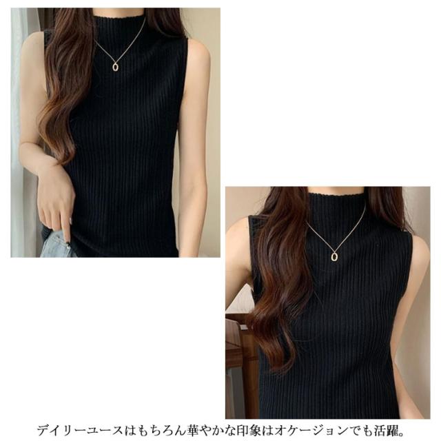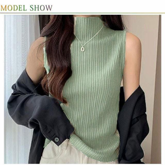 プリーツ タンクトップ レディース ハイネック ノースリーブ Tシャツ ニットトップス ストレッチ トップス ハイネックニット レイヤード シンプル 春 夏 全5色 サマーニット XS S M L XL