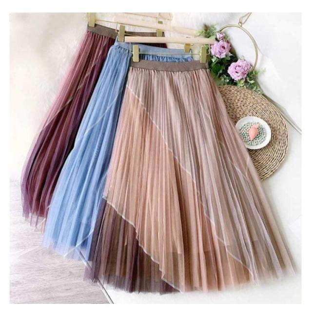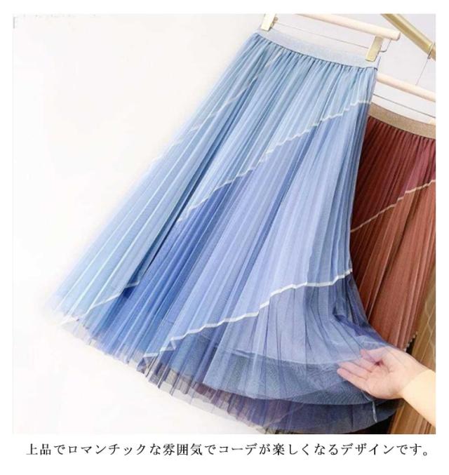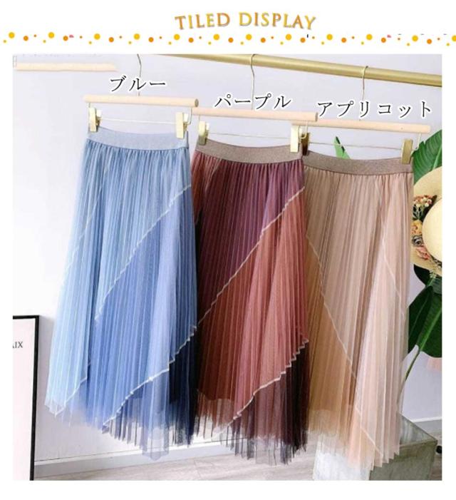 送料無料 配色 チュールスカート ボリューム ロング スカート フレアスカート プリーツスカート マキシ シアースカート ロング スカート シアー ウエストゴム マキシスカート フリル ロングスカート ミモレ丈 裏地付き バイカラー