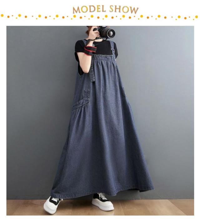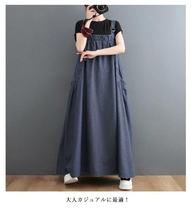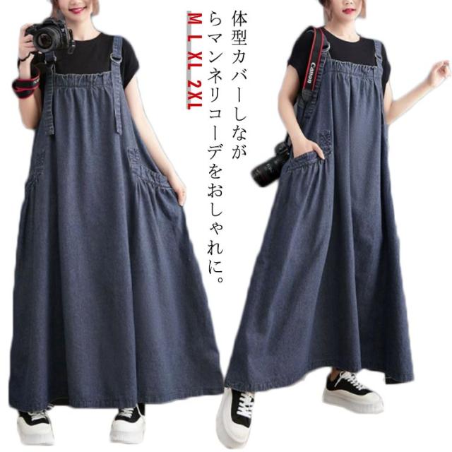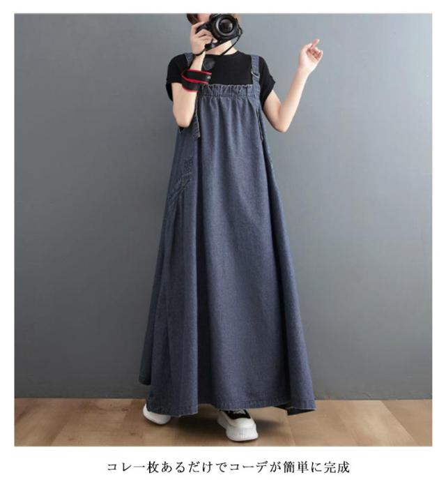 送料無料 ジャンパースカート デニム デニムワンピース ロング オールインワン ワンピース ロング丈 マキシ ジャンスカー サロペット デニムワンピ ポケット付き ワンピ オールインワン 体型カバー ゆったり ロングワンピ Aライン 春 夏 秋