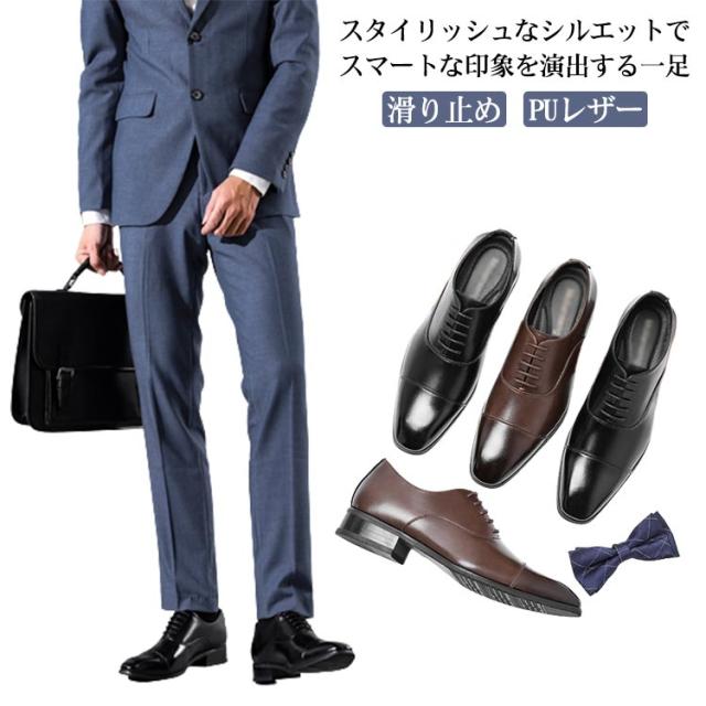 ビジネスシューズ メンズ 防水 PUレザー ドレスシューズ 紳士靴 フォーマル レースアップ お洒落 歩きやすい 軽量 滑り止め 冠婚葬祭 通勤 ストレートチップ 送料無料