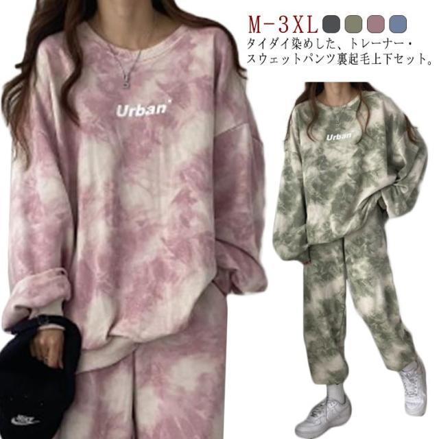 裏起毛 ジャージ 上下セット レディース タイダイ染め 厚手 スウェットトレーナー スウェットパンツ ルームウェア 部屋着 セットアップ 長袖 トレーナー ロングパンツ 寝巻き ナイトウェア スエット ゆったり 大きいサイズ パジャマ ダンス衣装 スポーツウエア