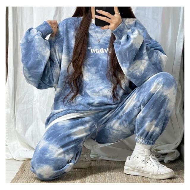 | M-3XL!タイダイ染めした、トレーナー・スウェットパンツ裏起毛上下セット。 ゆとりのあるサイズ感でリラックス感のある穿き心地が叶う。 トレンドのタイダイ染めが今っぽい雰囲気にしてくれます。 ルームウェアやパジャマとしてはもちろん、近所へのお散歩やお出かけにも着用いただけるワンマイルウェアとしても活躍してくれます! セットではもちろん、上下別々でも使いやすく、コーディネートの幅が広がる嬉しいアイテムです。 | |