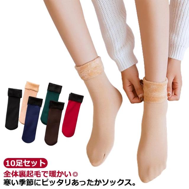 送料無料 靴下 レディース 暖かい 裏起毛 10足セット 厚手ソックス あったか 防寒ソックス くつ下 弾性 冷え取り靴下 足冷え対策 パイルソックス クルーソックス 履き毛布 ポカポカ 通学 スポーツ アウトドア 無地 シンプル