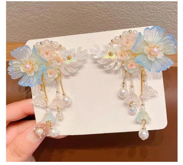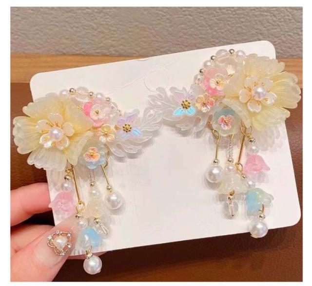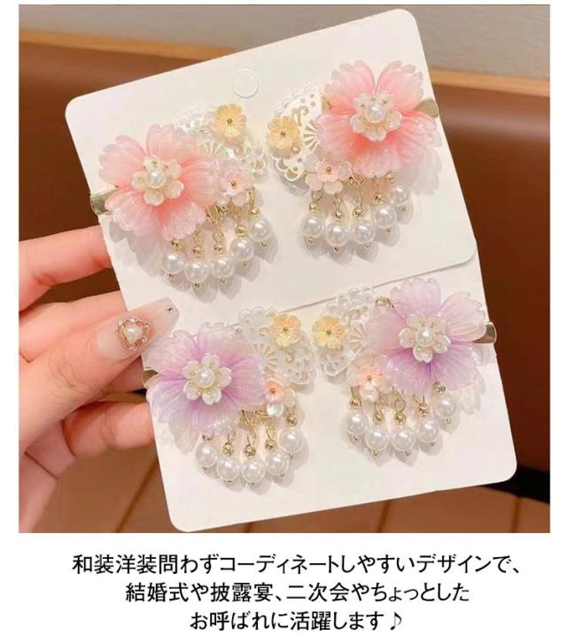 キッズ ヘアアクセサリー 和装 着物用 髪飾り キッズ ビジュー パール 花 フラワー ヘッドアクセサリー 七五三 髪飾り ちりめん クリップ留め かんざし ヘアクリップ まとめ髪 三歳 五歳 七歳 キッズ 髪飾り