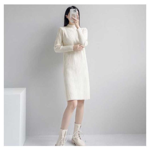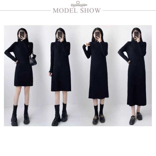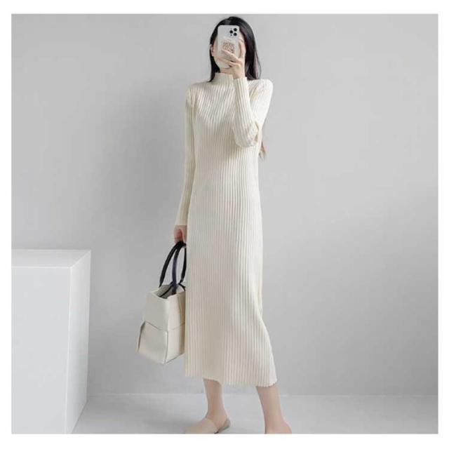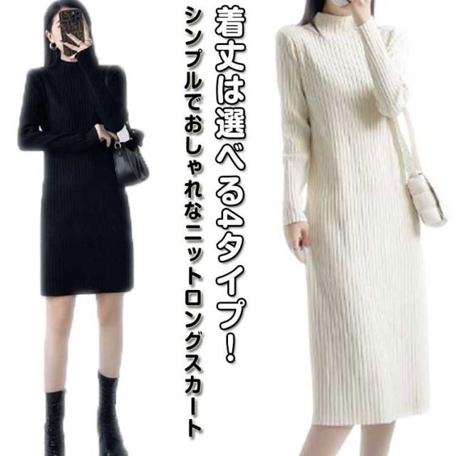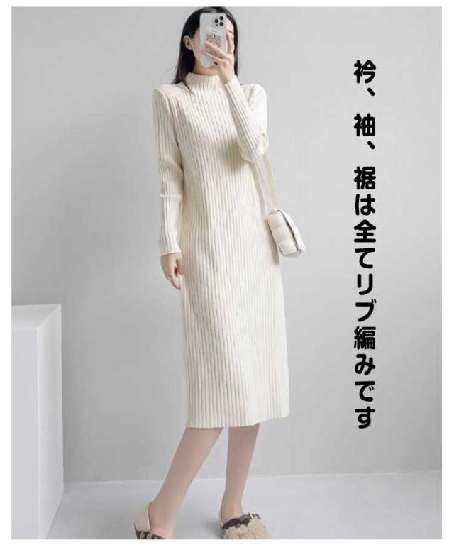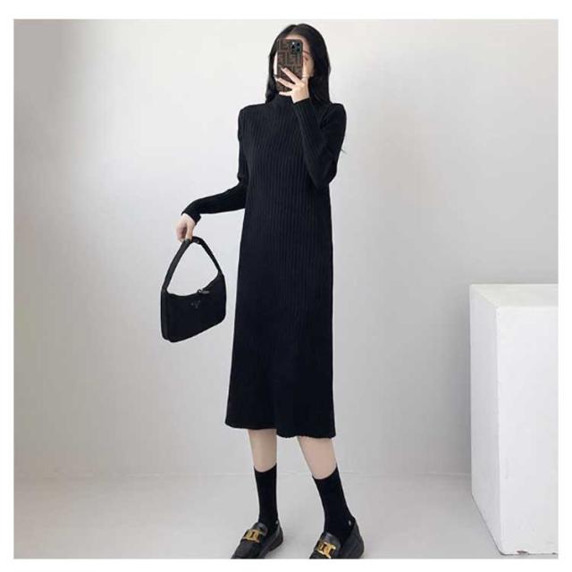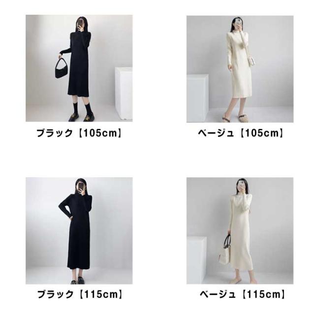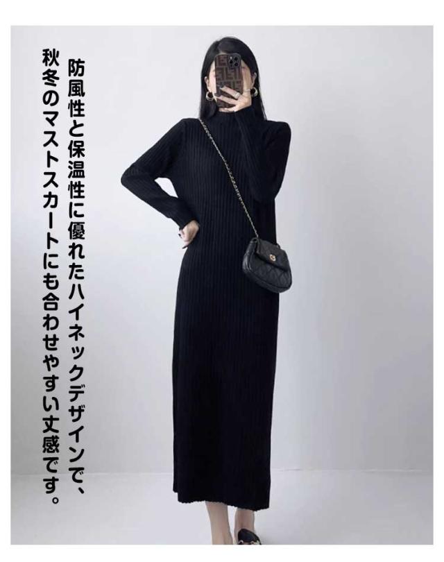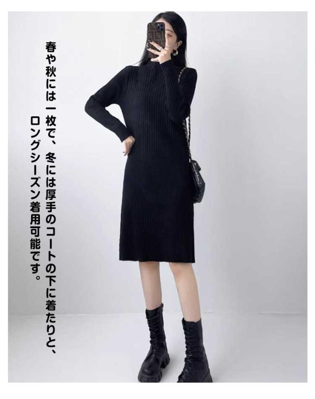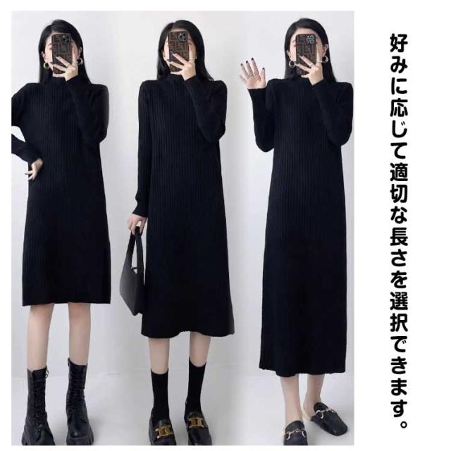 ニットワンピース レディース 【4丈選べる】 春 秋冬 長袖 ハイネック リブニット ワンピース ロングワンピース 膝丈 無地 膝丈ワンピース ニット 膝下 膝上 ワンピ 長袖 カジュアル 大きいサイズ 伸縮 秋 冬 春 大人 エレガント 着痩せ フォーマル