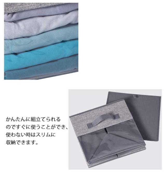 | 選べる4タイプ!折りたたみ収納ボックス 使い勝手の良いふたなしタイプなので、さっと取り出したい物の収納や、少し大きめの物の収納に便利です。 出し入れの際に便利な取っ手付きです。高いところや低いところからも取り出しやすいです。 かんたんに組立てられるのですぐに使うことができ、使わない時はスリムに収納できます。 子供部屋に おもちゃや教科書、プリントの収納にも丁度良く、衣類も収納できるので、お子様用のボックスとして活躍します。 洗面所に タオルや洗剤等の収納に。深さがあるのでたっぷり収納できます。 キッチンに 食品のストック類の収納に便利です。 | |