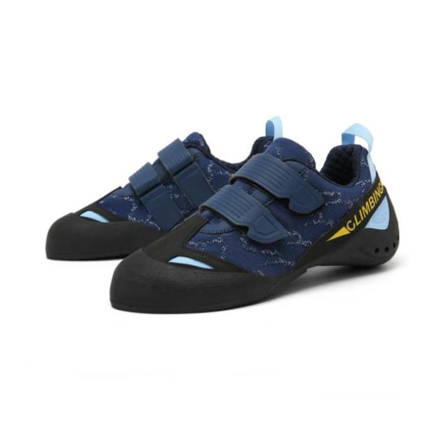 | 岩場やジムなど、屋内でも屋外でも使いやすいシューズです。 ベルクロタイプなので足入れがしやすく、サイズ調整もしやすいのが特徴です。 合成皮革で作られ、耐水性に優れているうえ、蒸れにくいです。 靴底には、グリップ性に優れたラバー素材を使用しています。 | |