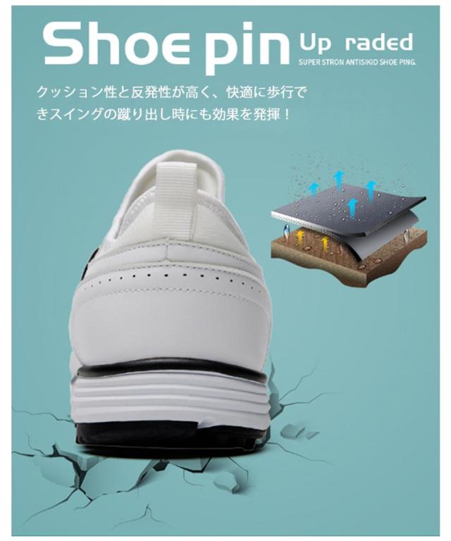 | ゴルフやスポーツなどあらゆるシーンで大活躍する万能シューズ。 クッション性と反発性が高く、快適に歩行できスイングの蹴り出し時にも効果を発揮! | |