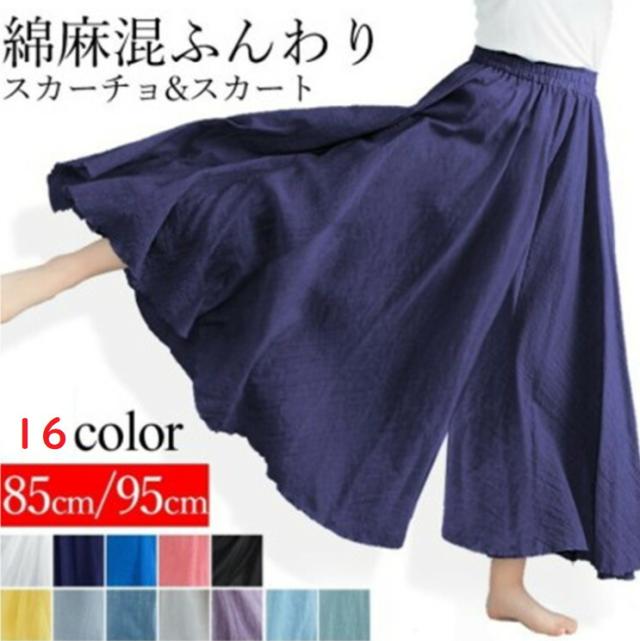 リネン ワイドパンツ リネン スカート フレアスカート 麻 低身長さん向け 低身長 コーデ レディース パンツ ブラック 黒 グリーン イエロー カラーパンツ