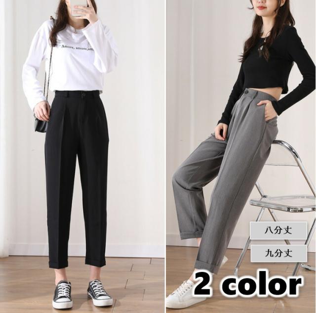 ストレートパンツ テーパードパンツ パンツ レディース オフィス 八分丈 九分丈 スーツパンツ ブラック グレー