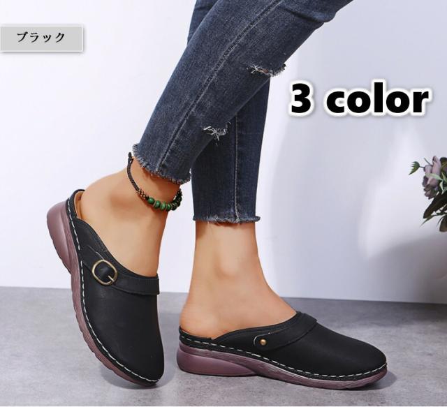 サンダル シューズ サボ カジュアルシューズ レディース レザー 合皮 ブラック ダークブラウン オレンジ