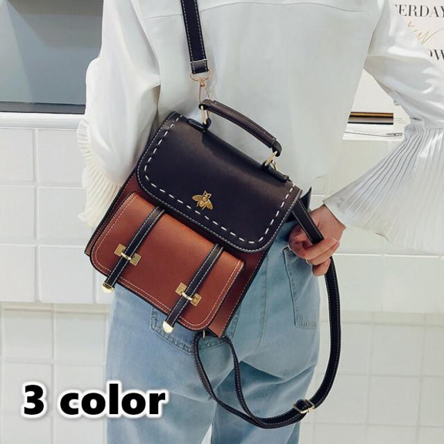 レディース リュック バックパック スモールバック PU皮 レザー スクエア おしゃれ 可愛い ツートンカラー コントラスト お出かけ デート
