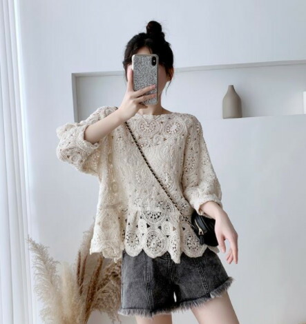 【売れ筋】クロシェカットソー カットソー クロシェ ニット かぎ編み 鍵編み コー カジュアル 着回し レディースファッション トップス 大人カジュアル ママファッション