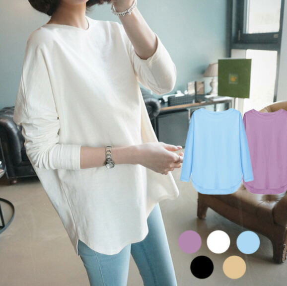 トップス クルーネックカットソー クルーネック ラウンドネック ラウンドカット トップス インナー カットソー ロング丈